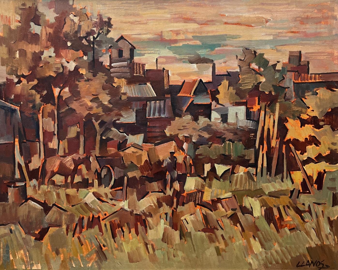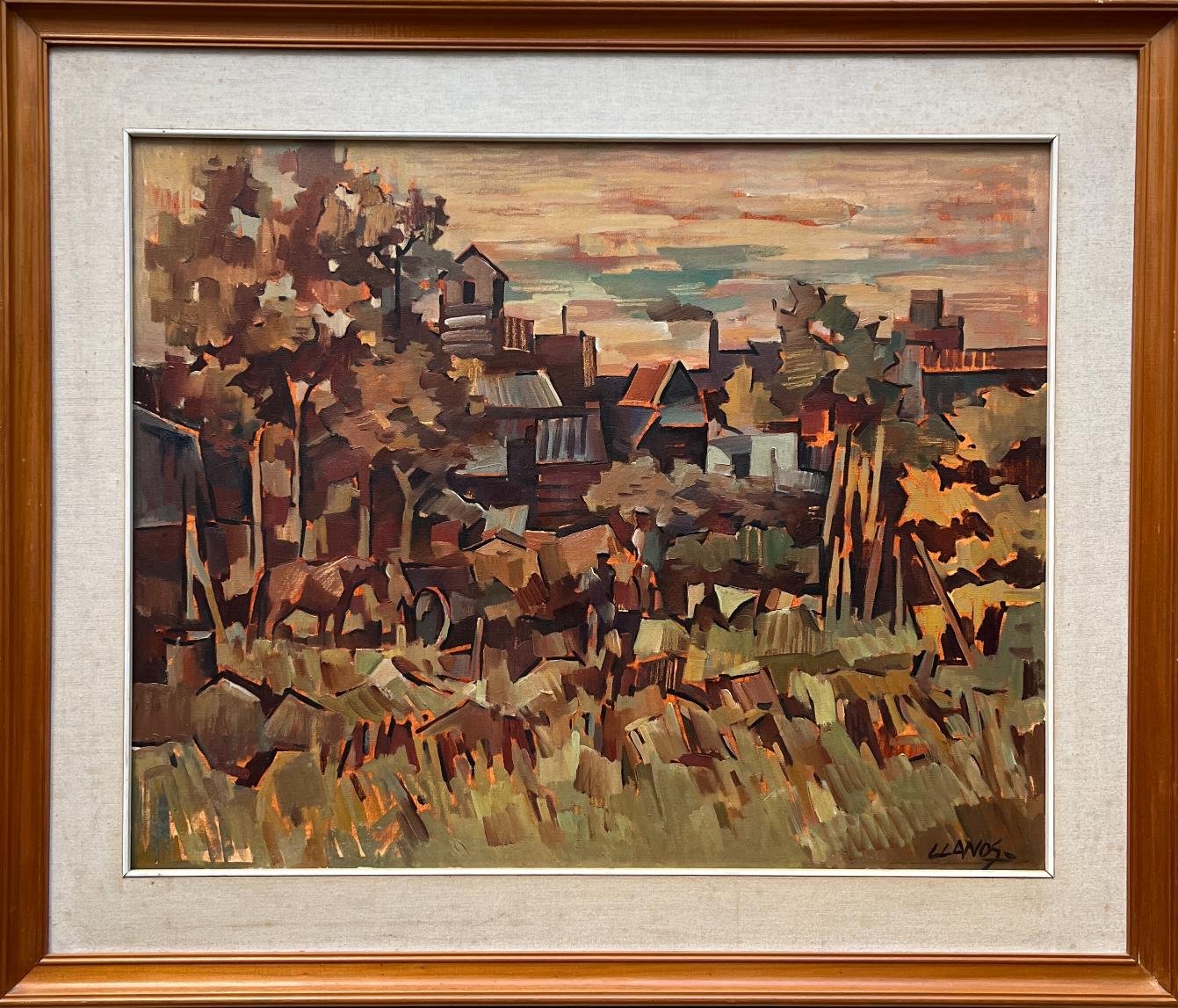 CARLOS LLANOS (Escuela uruguaya, 1930-2014) Óleo sobre tela «Otoño y ritmos monocromos» Firmado abajo a la derecha Al dorso certificado impreso firmado por el artista 60 x 75 cm