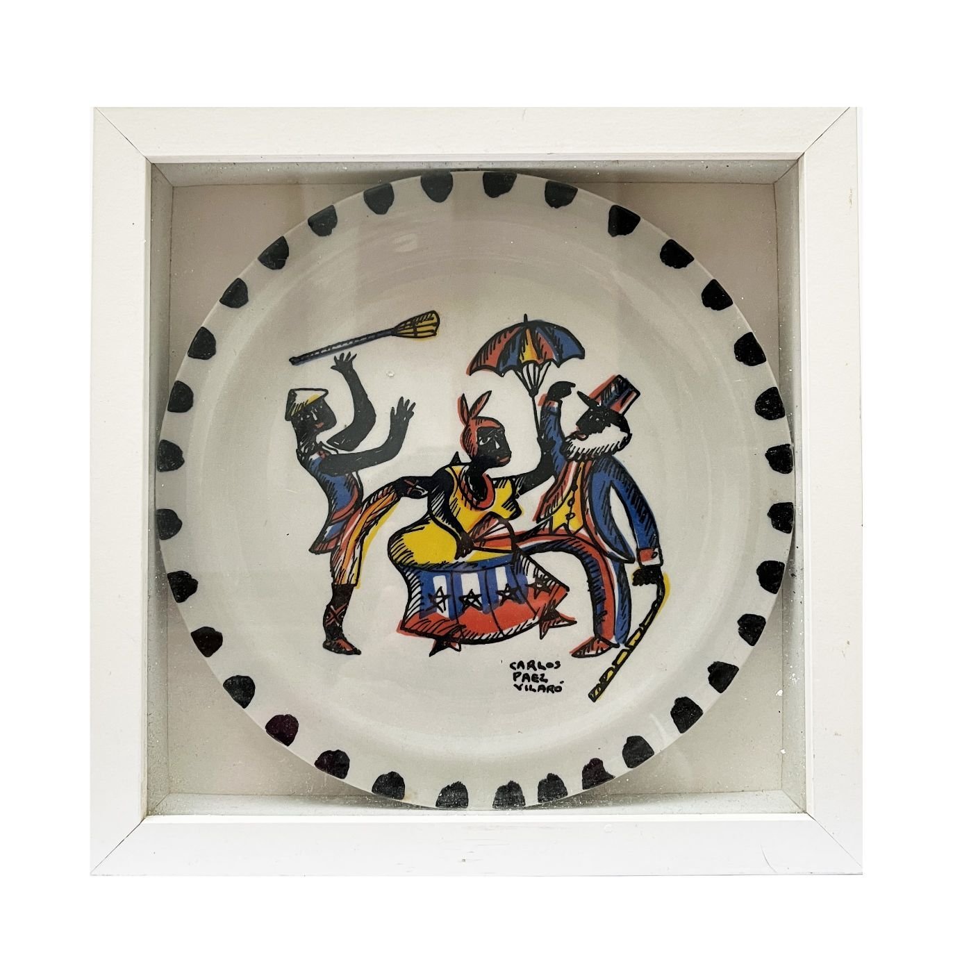 CARLOS PAÉZ VILARÓ (1923-2014) Plato en porcelana «Candombe» Firmado abajo a la derecha Al dorso firmado y situado «Casapueblo Punta Ballena» por el artista Diámetro 23 cm
