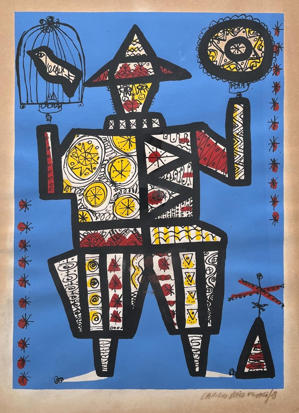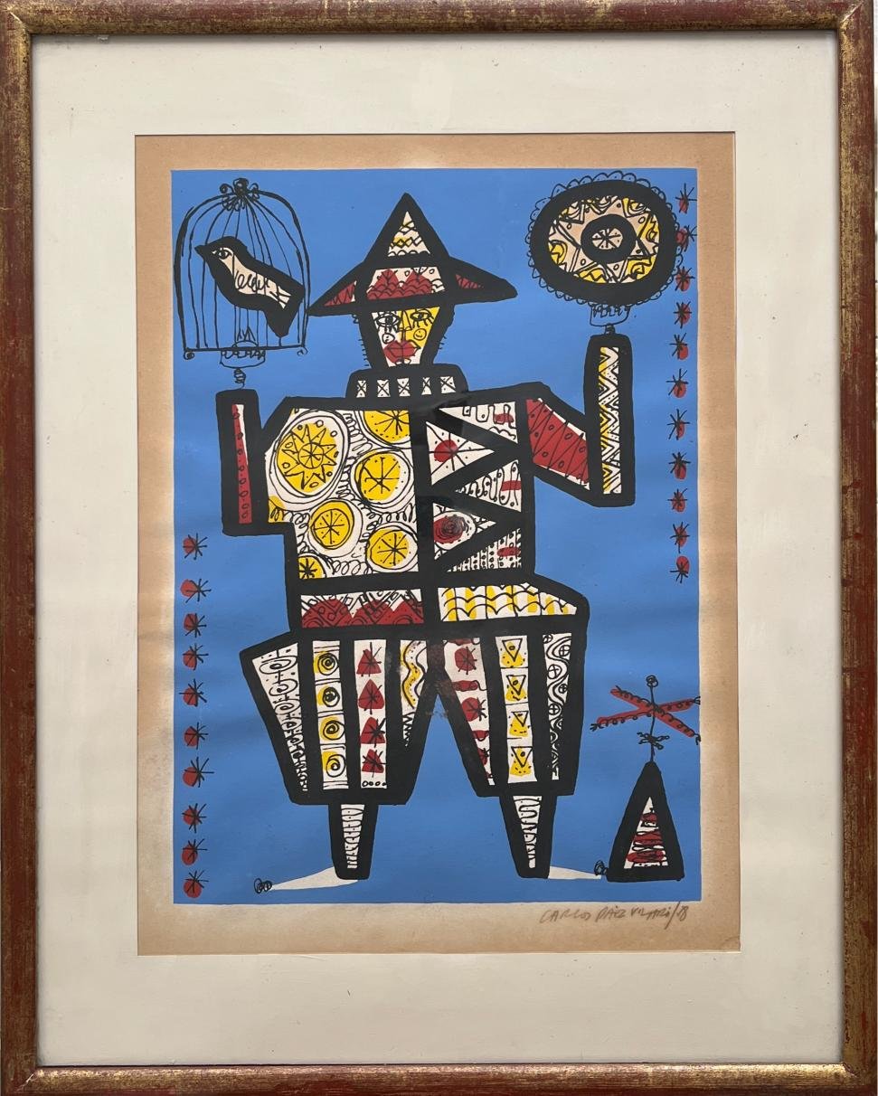 CARLOS PÁEZ VILARÓ (Escuela uruguaya, 1923-2014) Grabado serigráfico «Personaje» Firmado y fechado «58» abajo a la derecha 37 x 27 cm