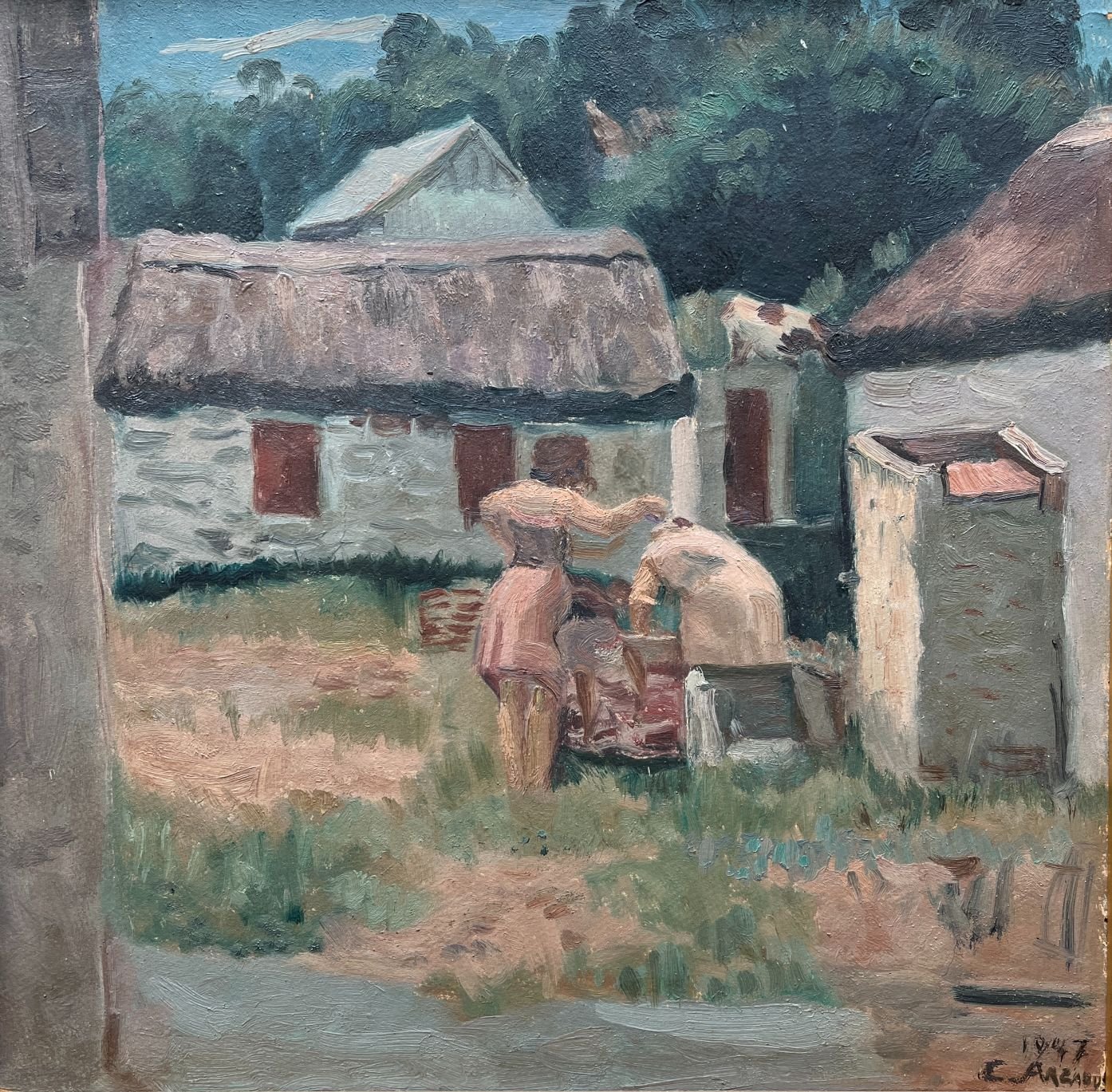 CARMELO DE ARZADUN (1888-1968) «Fondo» Óleo sobre cartón Firmado y fechado abajo a la derecha 42 x 41 cm Al dorso etiqueta de Galería Río de La Plata, Montevideo