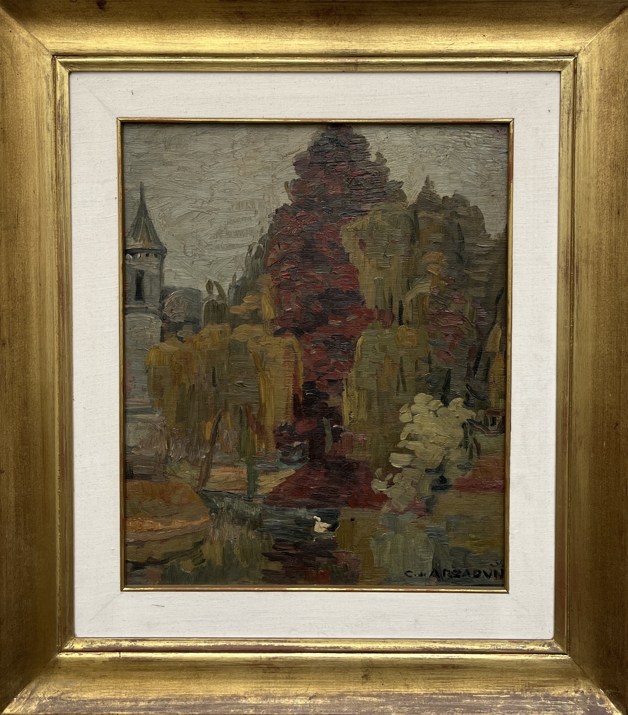 CARMELO DE ARZADUN (Escuela uruguaya, 1888-1968) Óleo sobre tabla «Parque Rodó» Firmado y fechado «39» abajo a la derecha 46 x 38 cm