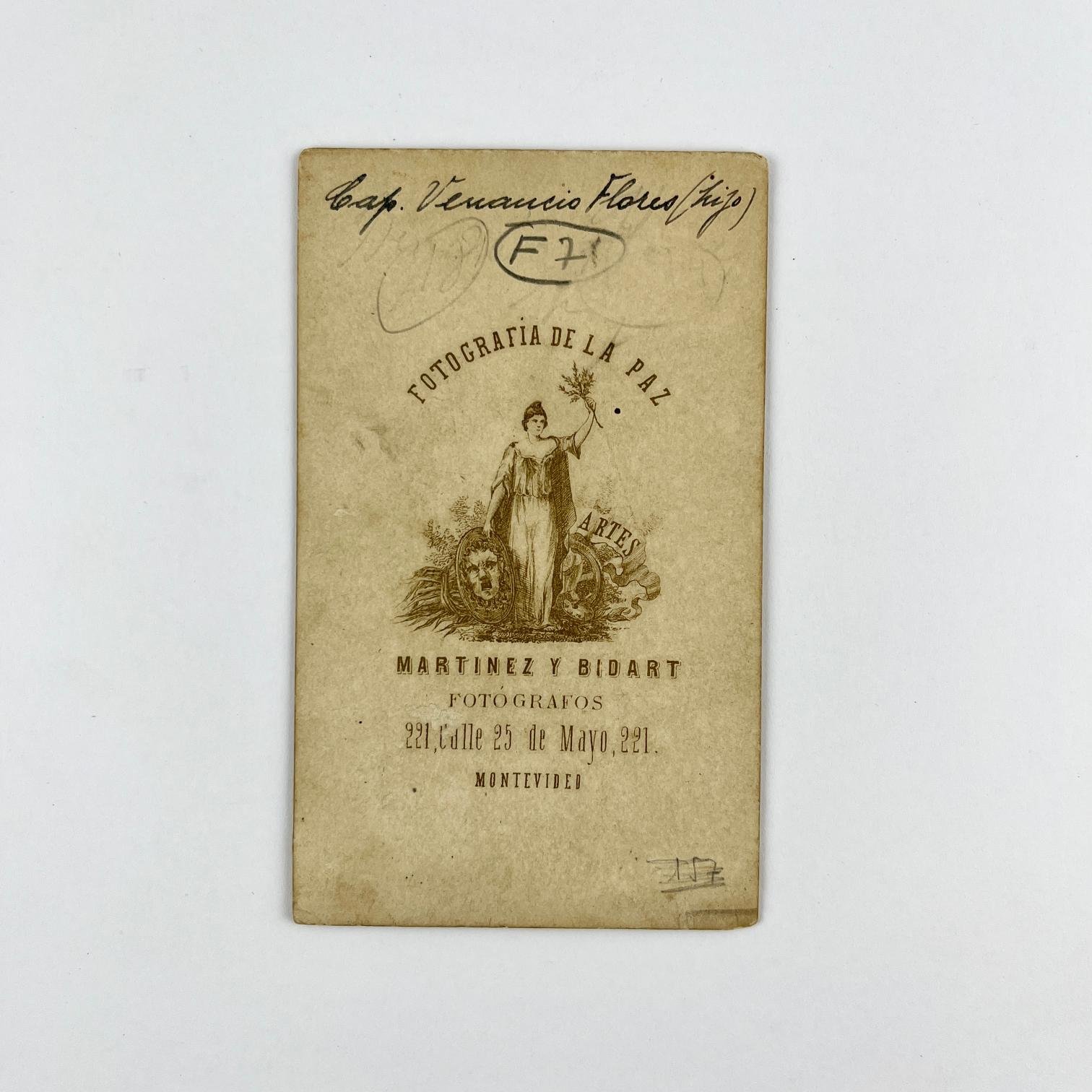 Carte de visite. “Capitán Venancio Flores hijo”, muerto en la toma de Florida. Martínez y Bidart, Montevideo.