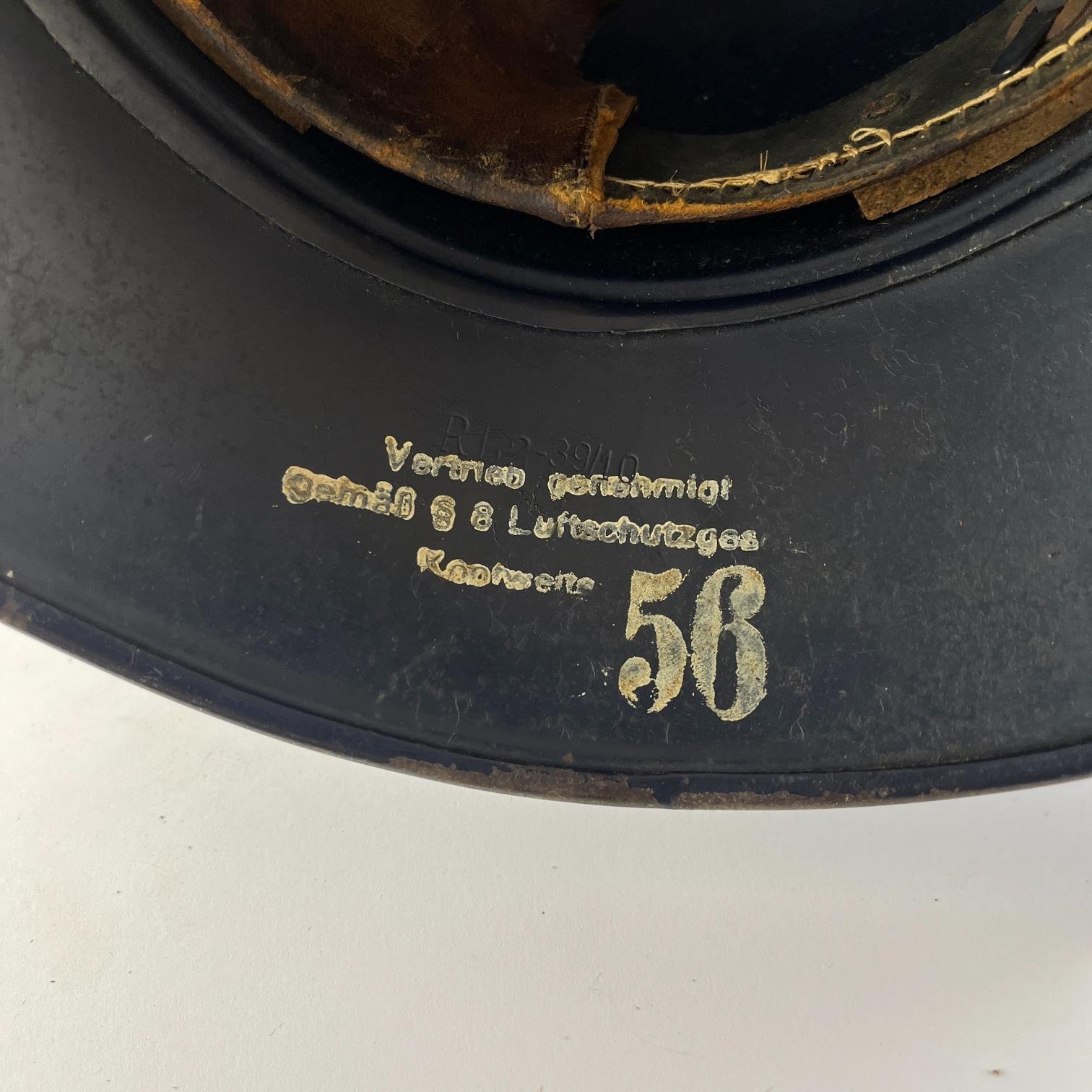 Casco alemán M38 para defensa civil de la Luftschutz, con calca. Interior con avería. WWII.