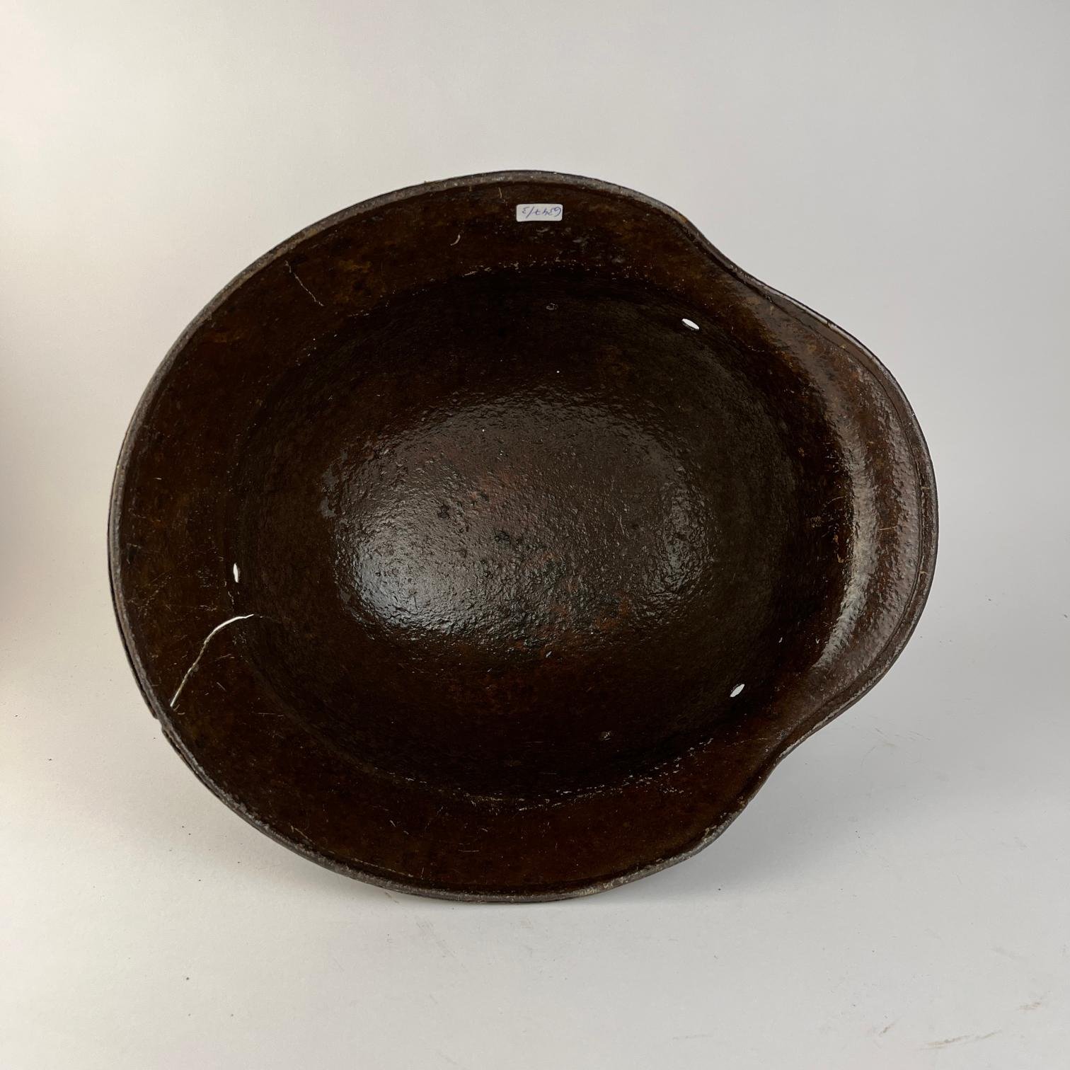 Casco alemán modelo M42, WWII, en hierro. Con faltantes, sin interior y fisurado.