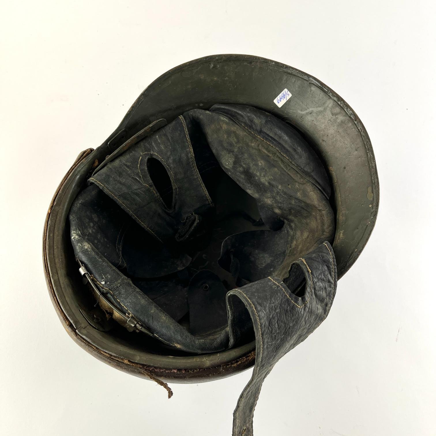 Casco francés de tanquista, utilizado por la Guardia Metropolitana de la Policía Nacional de Uruguay. Falta emblema. Interior completo.