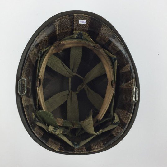 Casco militar estadounidense modelo MI en acero pintado color verde. Liner e interior incompleto. Año 1945.