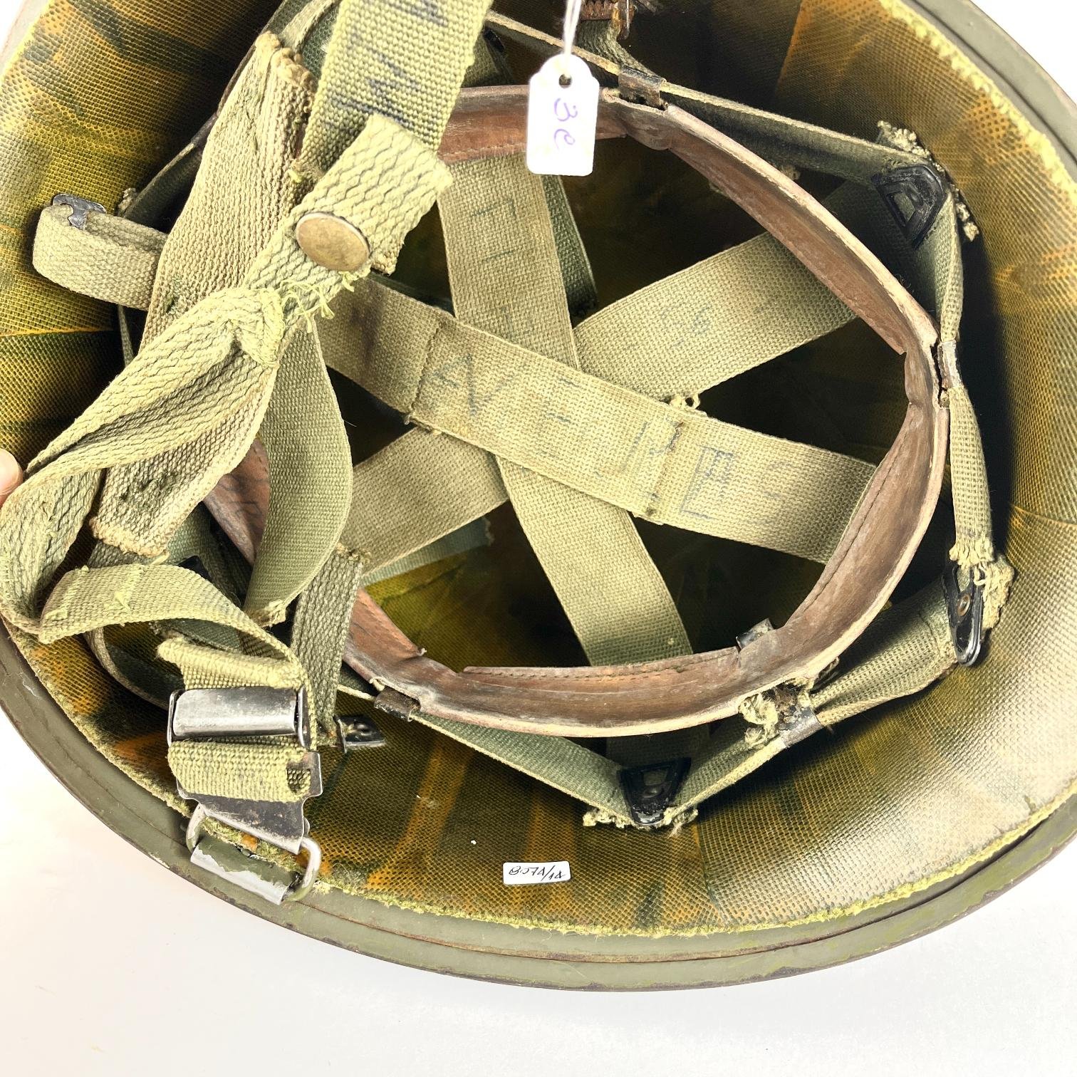 Casco norteamericano M1, en acero pintado verde. Liner e interior completo.