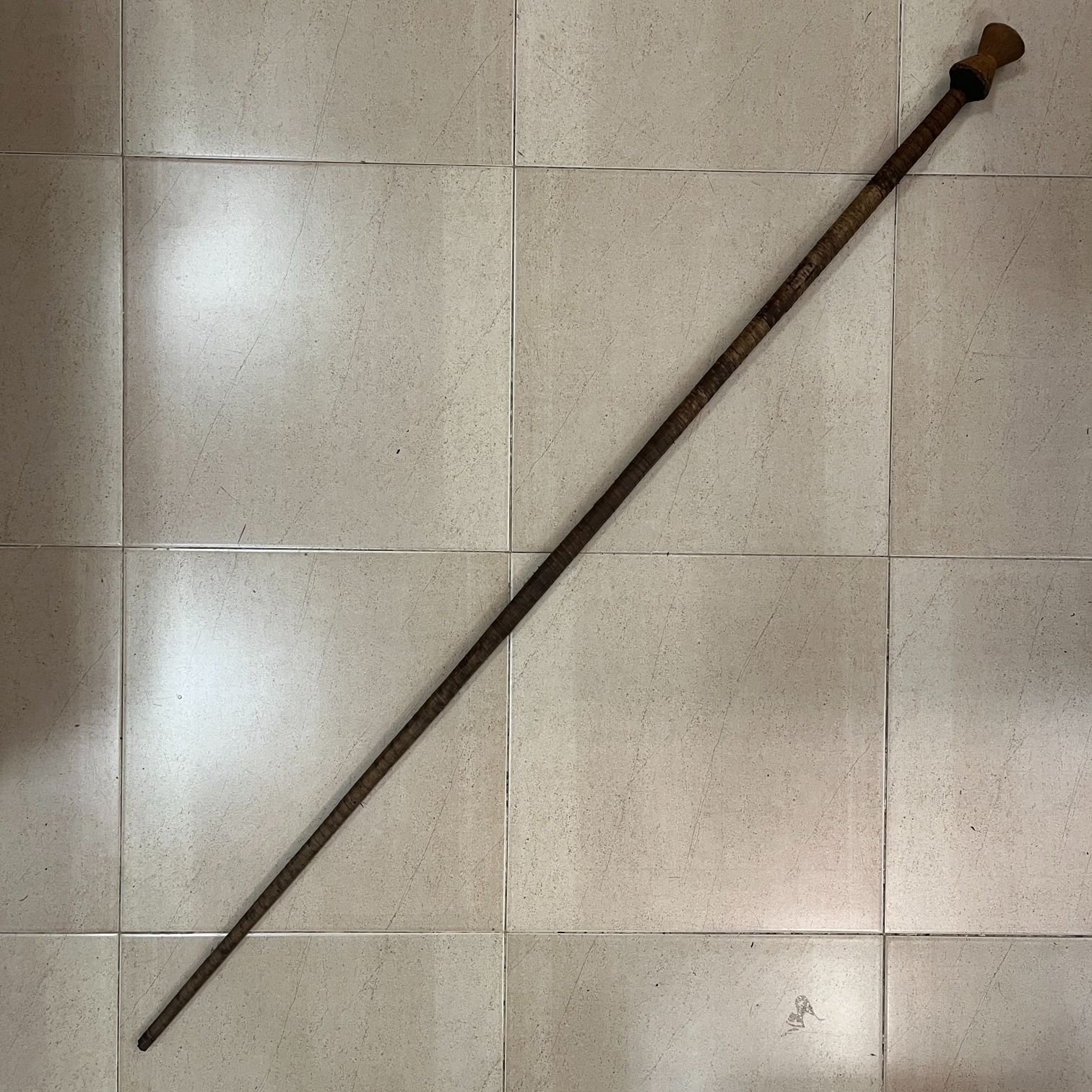 Antigua cerbatana en madera tallada y forrada en fibras naturales. Largo 156 cm.