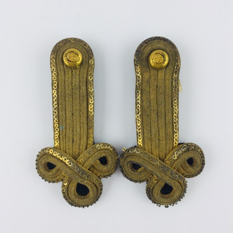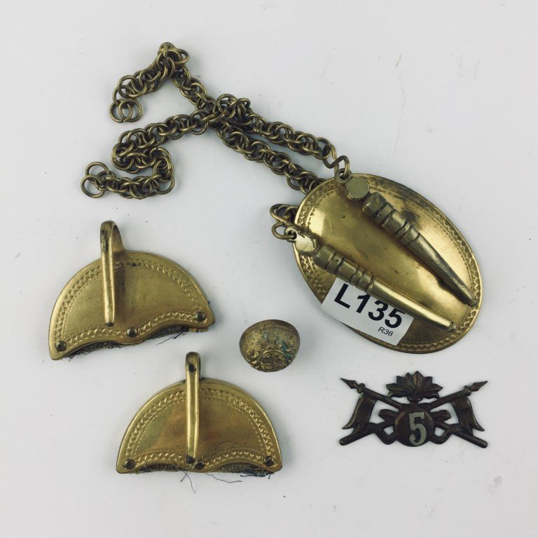 Lote de charreteras, piezas de bandolera para cartuchera e insignia de lanceros pertenecientes al ejército uruguayo.
