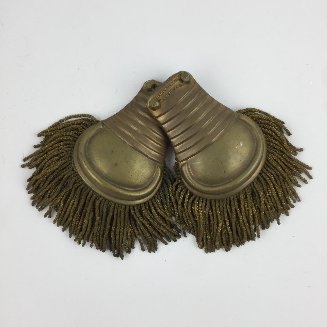 Par de charreteras italianas, en bronce, con canelones en hilo dorados.