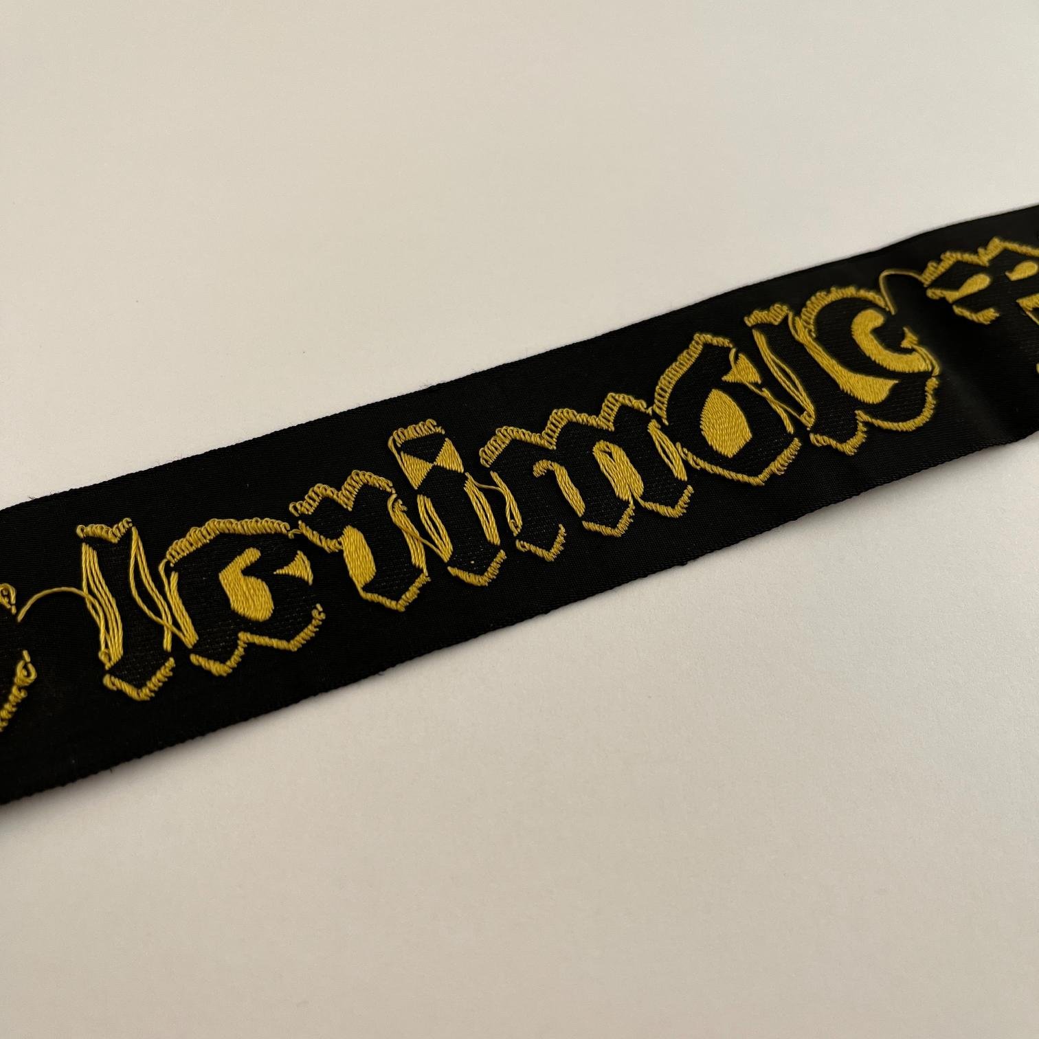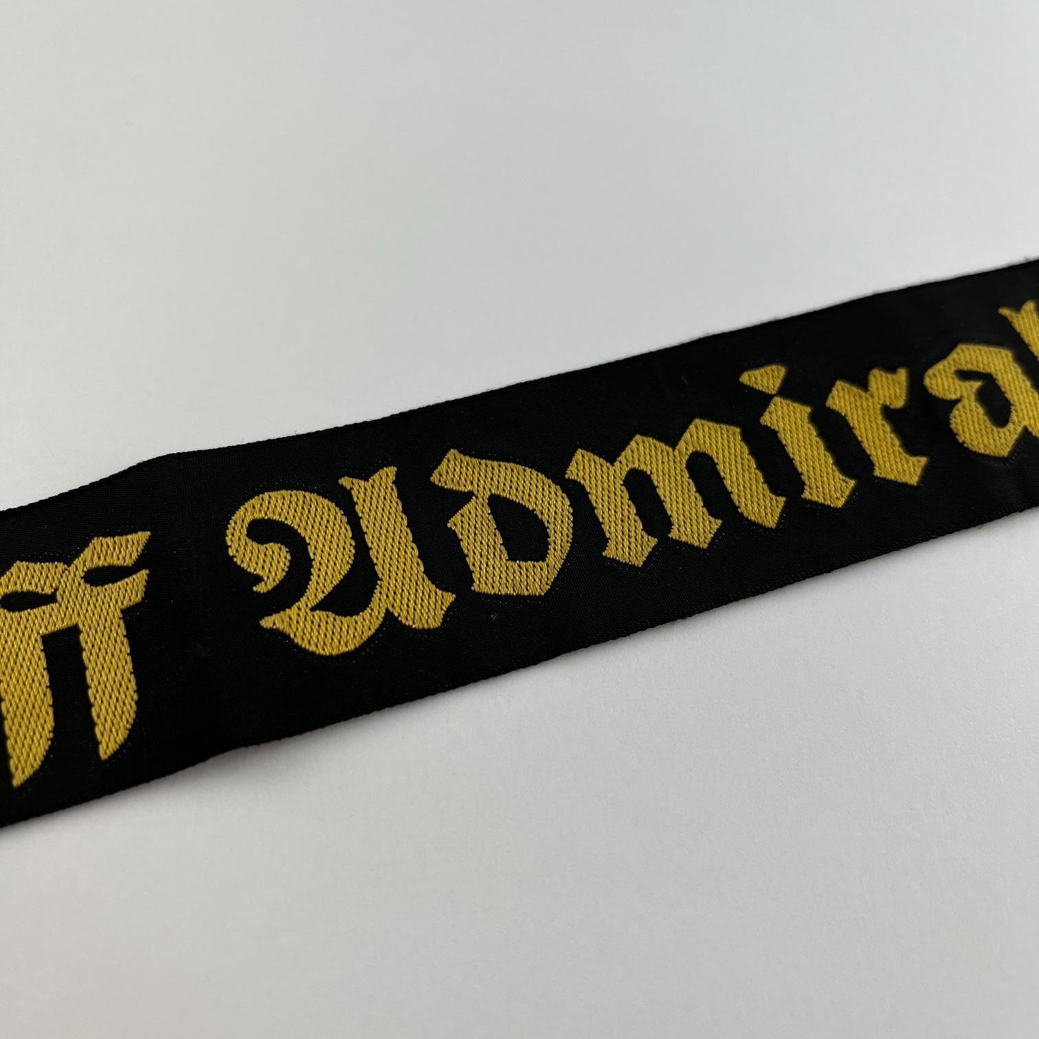 Cinta de gorra o “mützenband” bordada en hilo dorado y perteneciente a la Kriegsmarine del Panzerschiff alemán Admiral Graf Spee, crucero alemán que participó en la Batalla del Río de la Plata contra las naves británicas Ayax, Exeter y Achilles el 13 de diciembre de 1939. 87 x 3,5 cm.