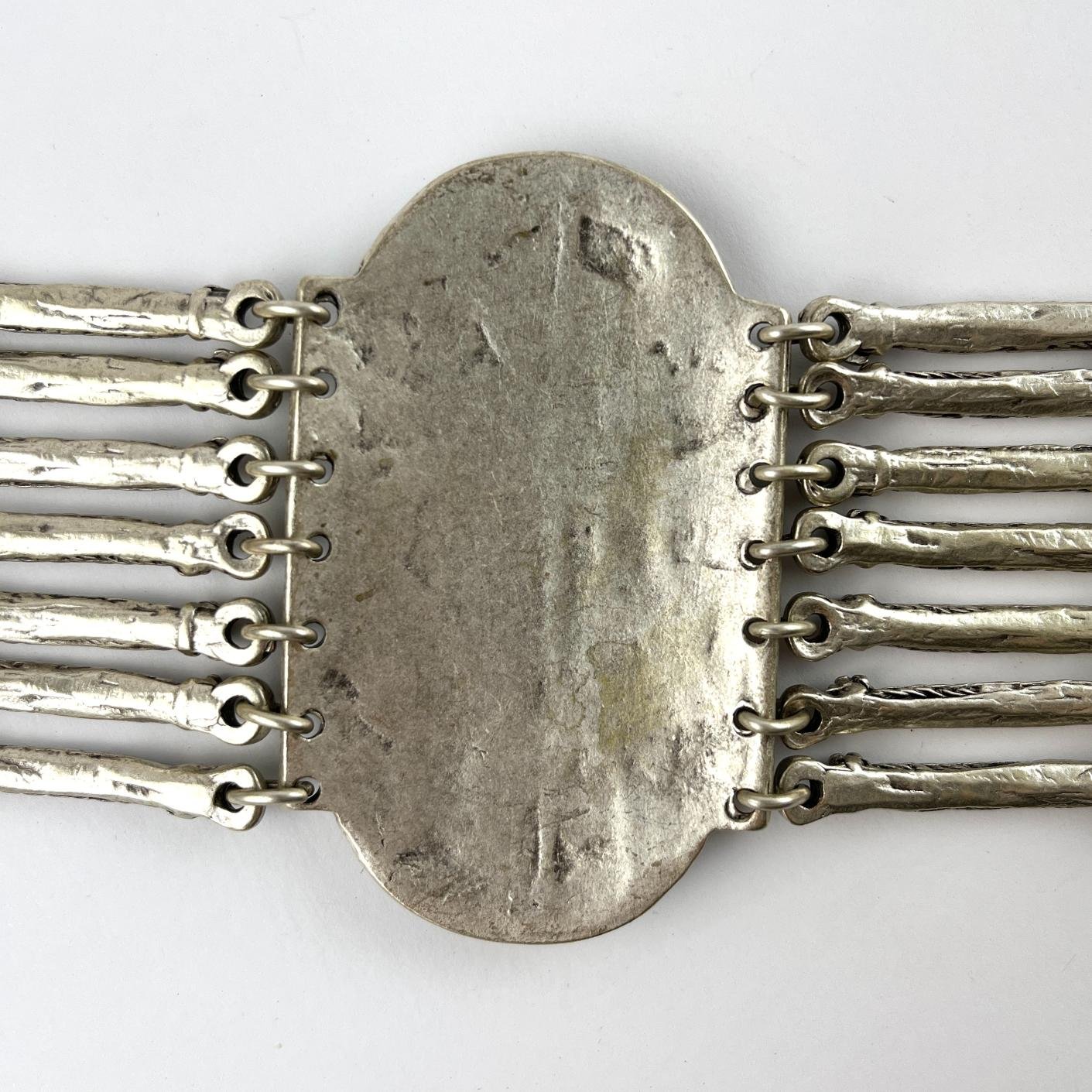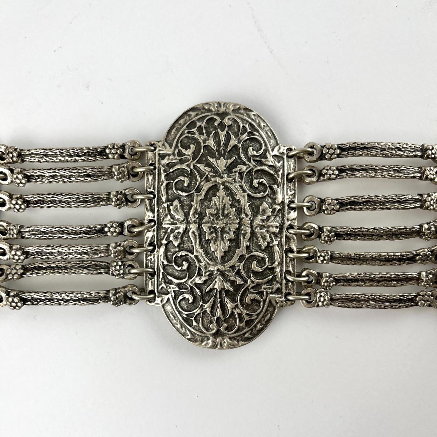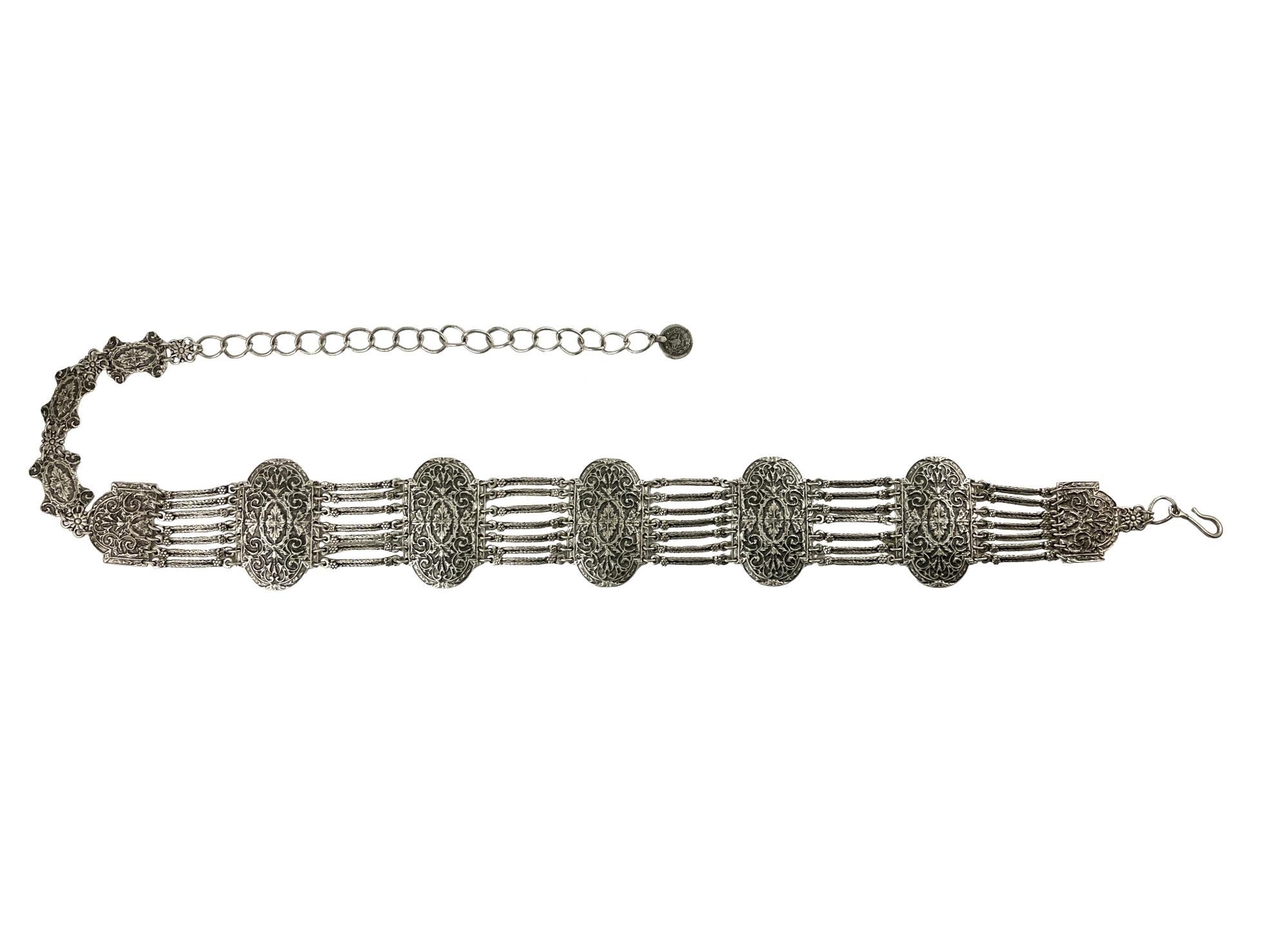 Cinturón persa en placas de plata fundida decorado arabescos. Peso 400 gr.