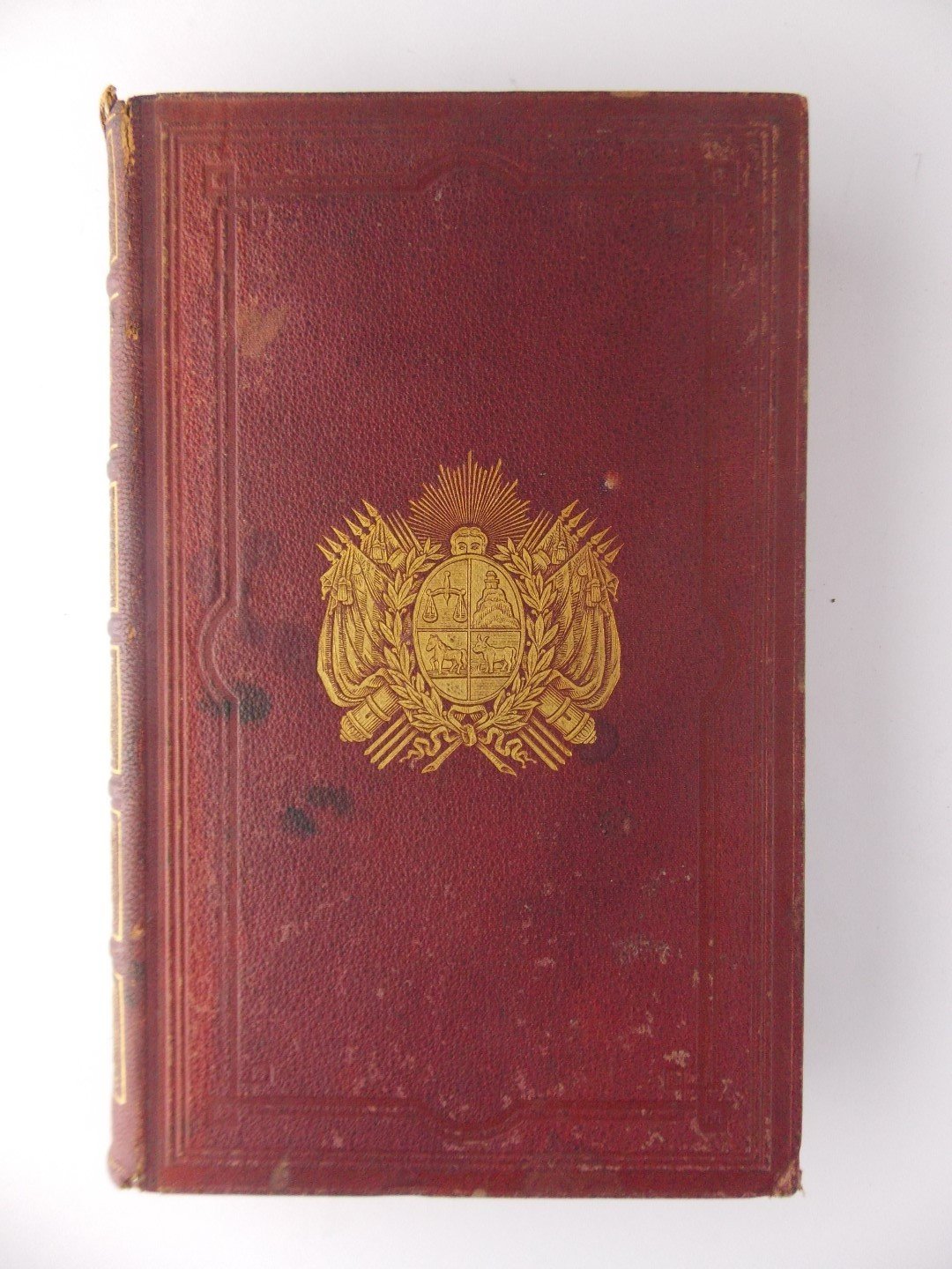 Código Civil de la República Oriental del Uruguay. Montevideo, Editado por Francisco Ybarra. 1879. Encuadernado en pleno cuero, con escudo nacional uruguayo estampado en oro. Tercera edición.