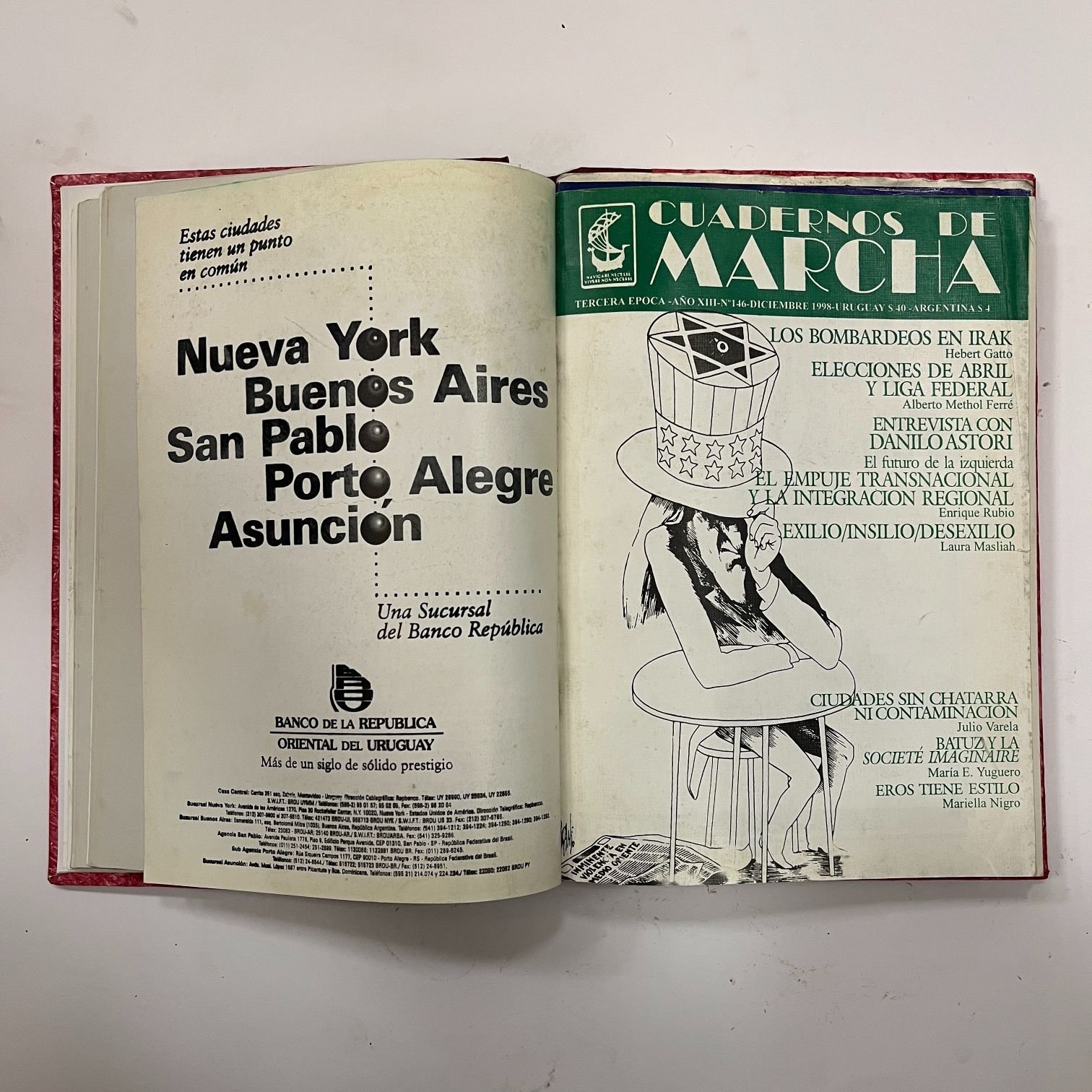 Colección de 191 ejemplares de “Cuadernos de Marcha”, publicados entre 1967 y 2001, nos. 1 a 78 (primera época, 1967-1974), 1 a 33 (segunda época, 1979 a 1985), 1 a 73 (tercera época, 1985 a 2001). Junto a 7 números extraordinarios publicados entre 1991 y 2000. Encuadernados en 48 tomos.