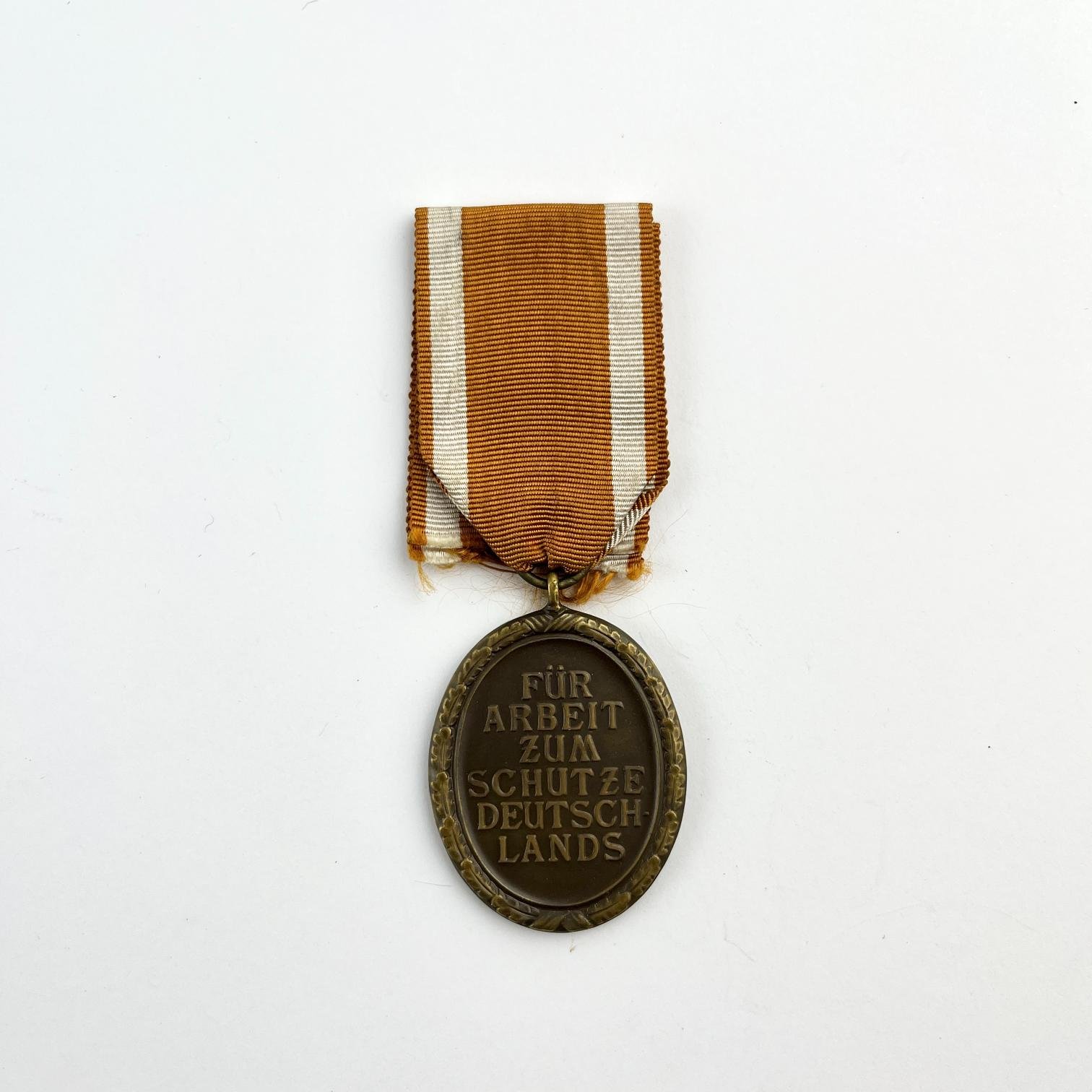 Condecoración militar alemana época nacionalsocialista. “Medalla de la Muralla del Atlántico”, en bronce, con cinta original.