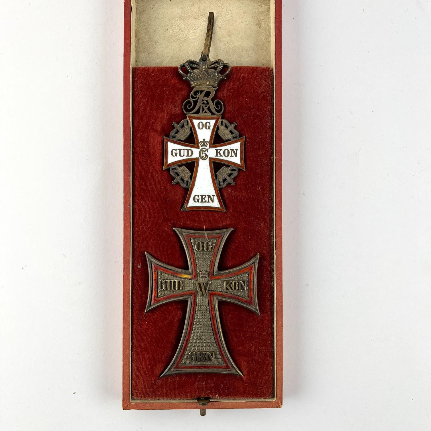 Condecoración dinamarquesa en plata y esmalte. «Orden de Danebrog», de segunda clase. En su estuche original.