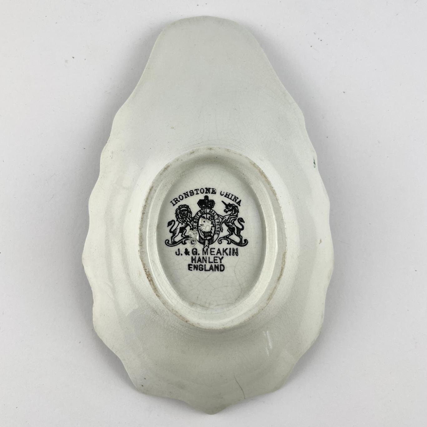 Coquilla perteneciente a la Cañonera Gral. Artigas, en loza inglesa blanca con detalles en verde y dorado. C. 1880. 20 x 13 cm. Junto con: «Lecturas seleccionadas. Historia naval.» Edición en homenaje al centenario de la Escuela Naval. Montevideo, 2017.