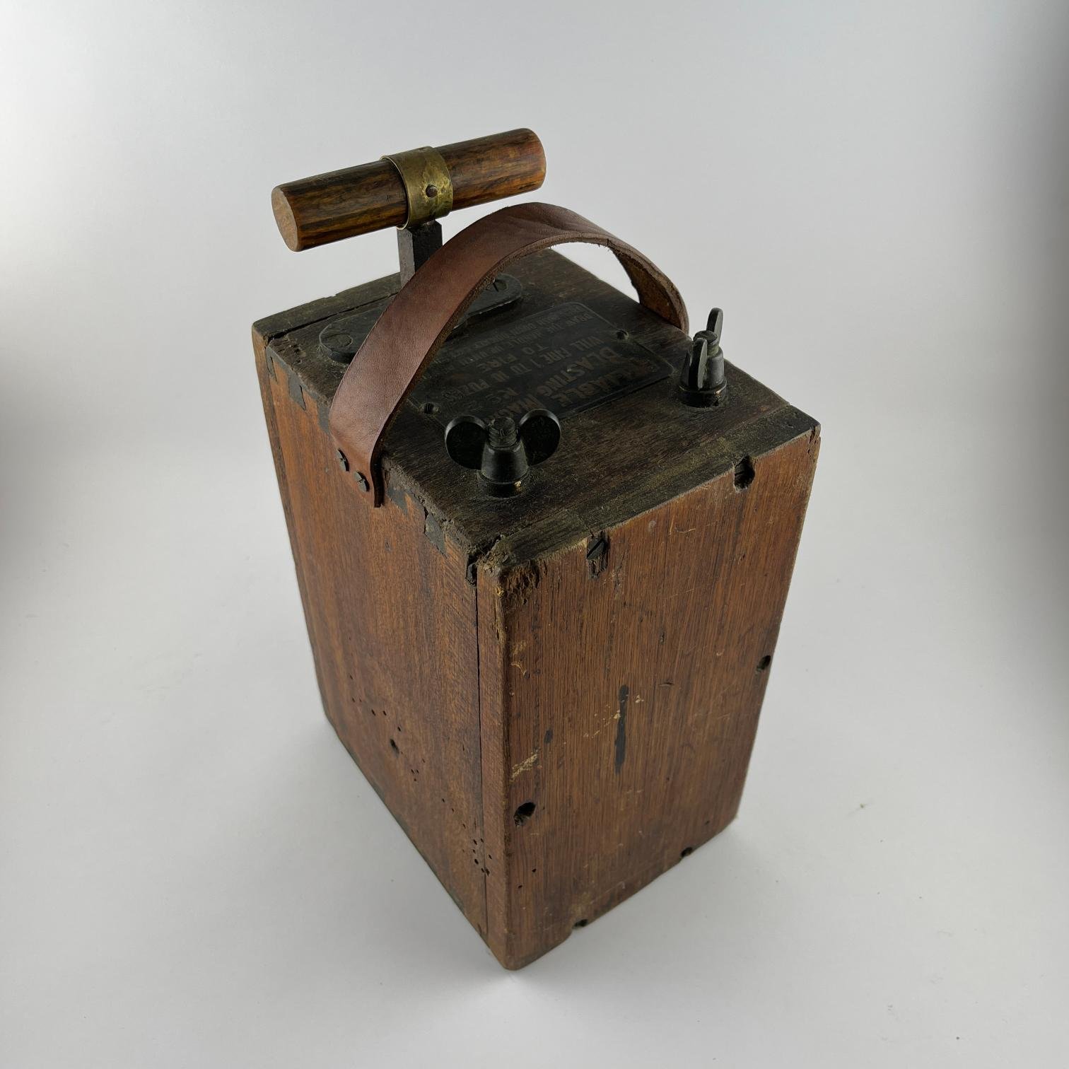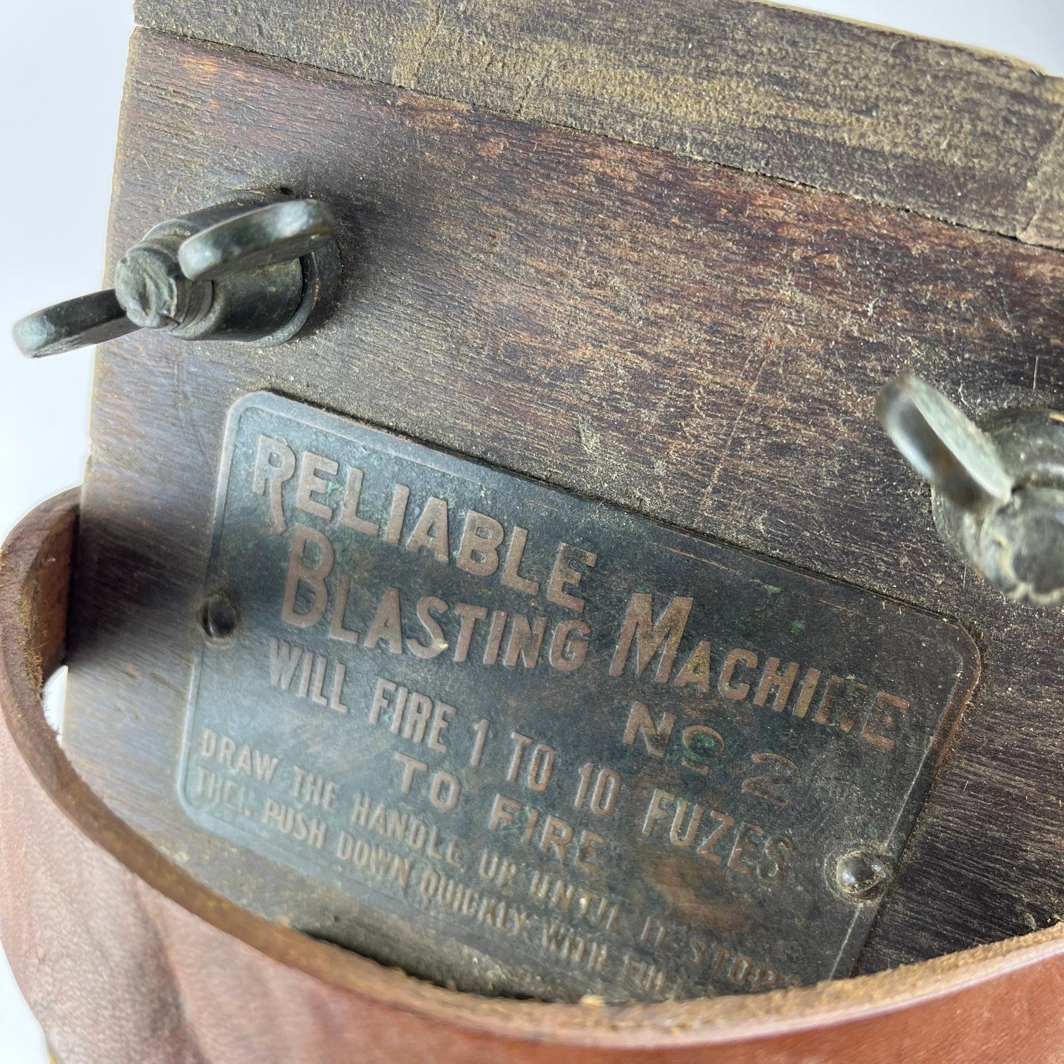 Detonador estadounidense a magneto, para dinamita, finales s. XIX. En madera de roble con chapa en bronce e inscripción “Realiable Blasting Machine Nº2”.