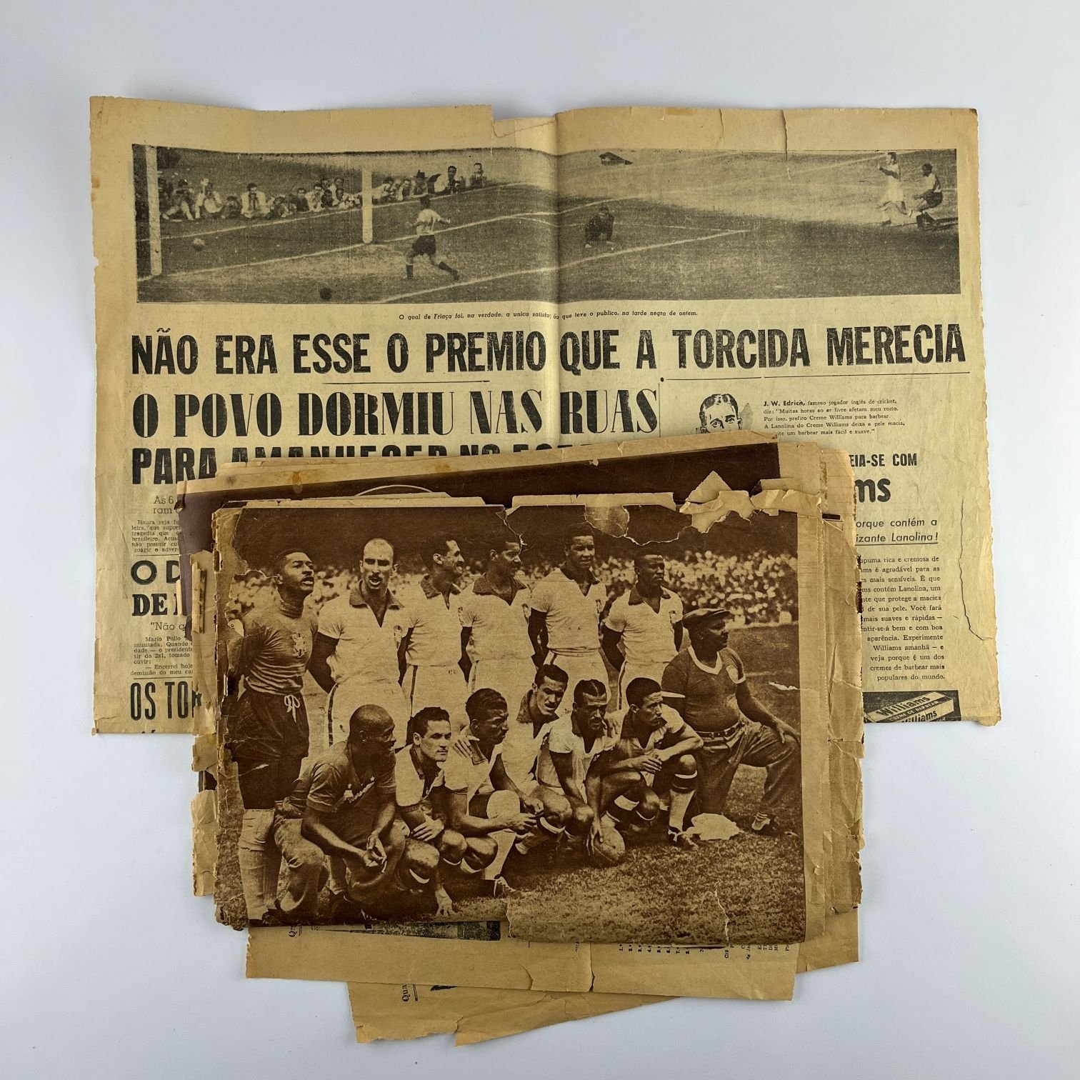 Conjunto de documentos relativos al Mundial de Fútbol de 1950, reunidos por el ciudadano uruguayo Valentín Otero durante su visita al campeonato, a sus veintidós años: 18 fotografías con vistas de las ciudades de Río de Janeiro y San Pablo y miembros de la delegación uruguaya; dos entradas para la octava rueda (sector XXVI, filas M15 y M11); diversos recortes de prensa brasileña y un pasaporte a nombre de Otero.
