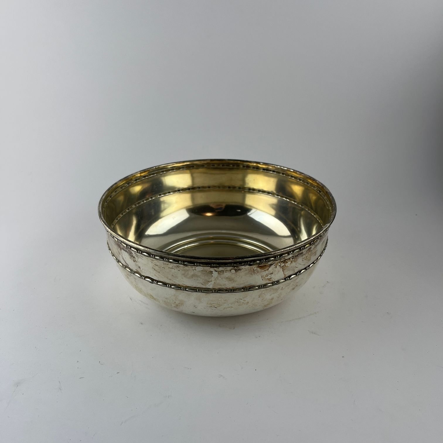 Dos fuentes alemanas en plata, una lisa con asas y borde en ondas (diámetro 22 cm), otra con borde perlado (diámetro 20 cm). Peso total 900 gr.