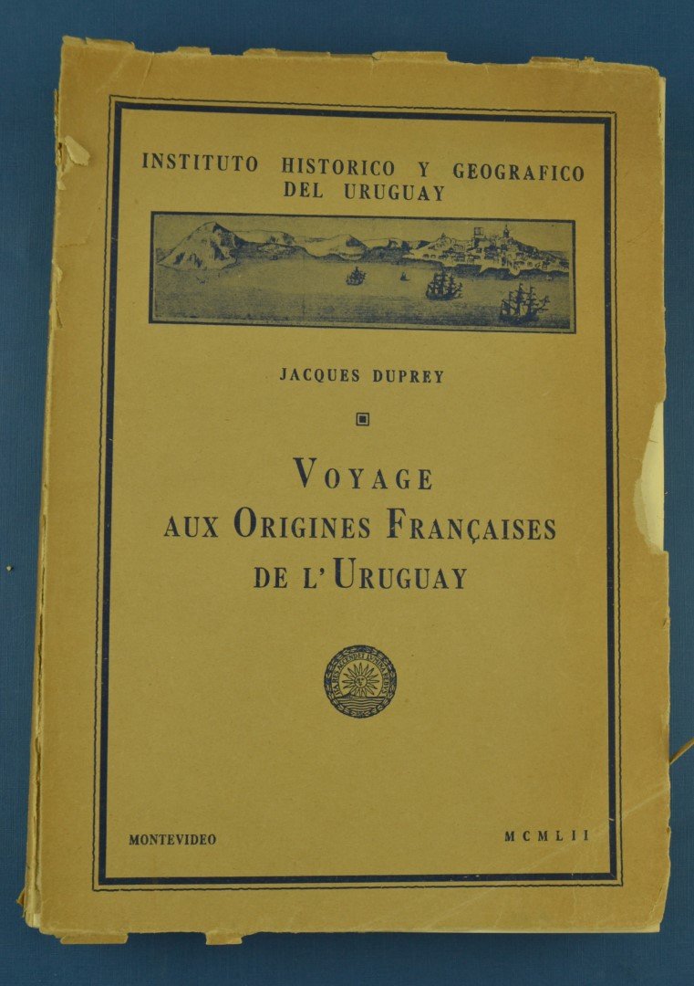 DUPREY, Jacques: Voyage aux origines Francaises de L’Uruguay Instituto Histórico y Geográfico del Uruguay. 1952. Con dedicatoria y firma del autor en la portadilla fechada 1957.