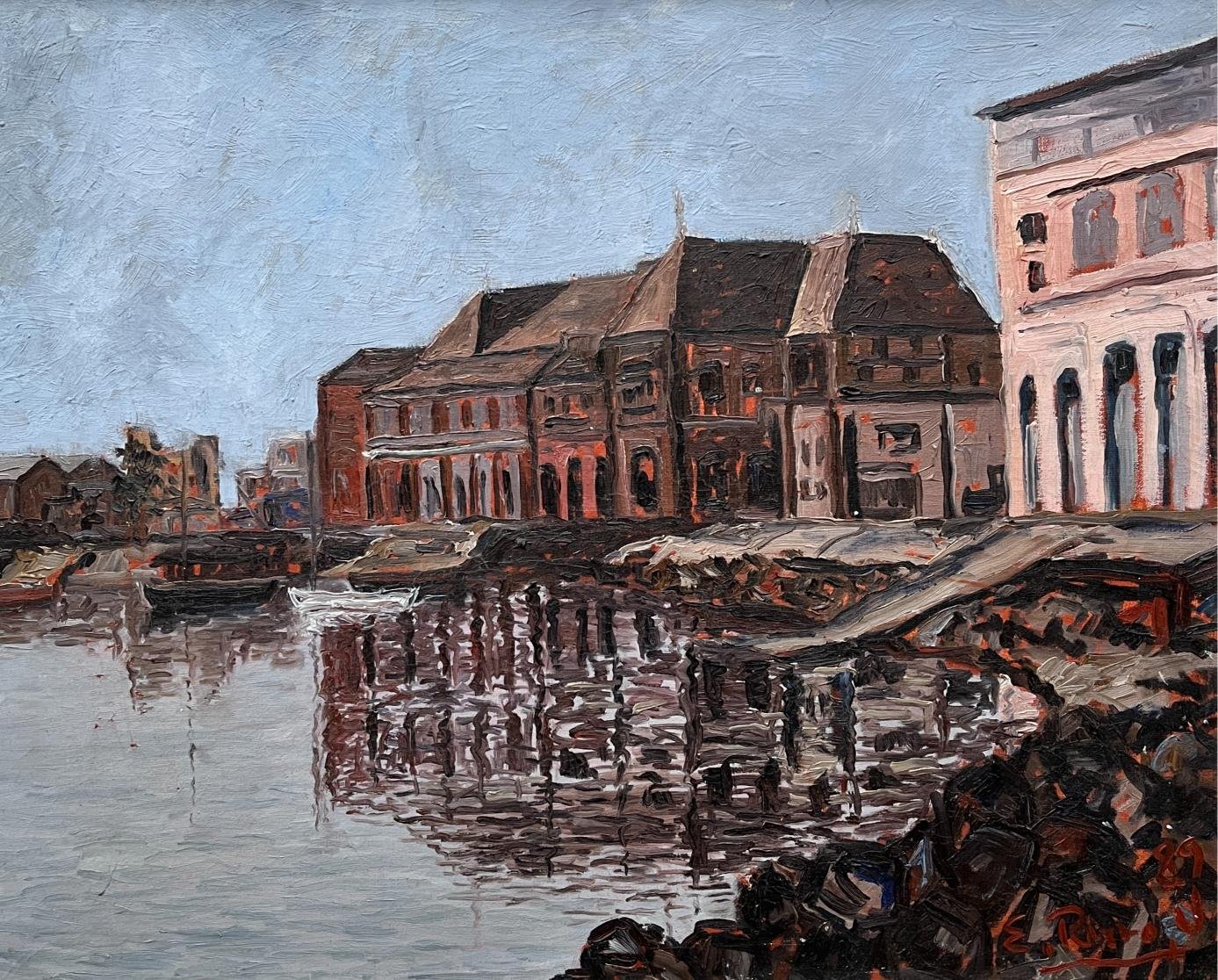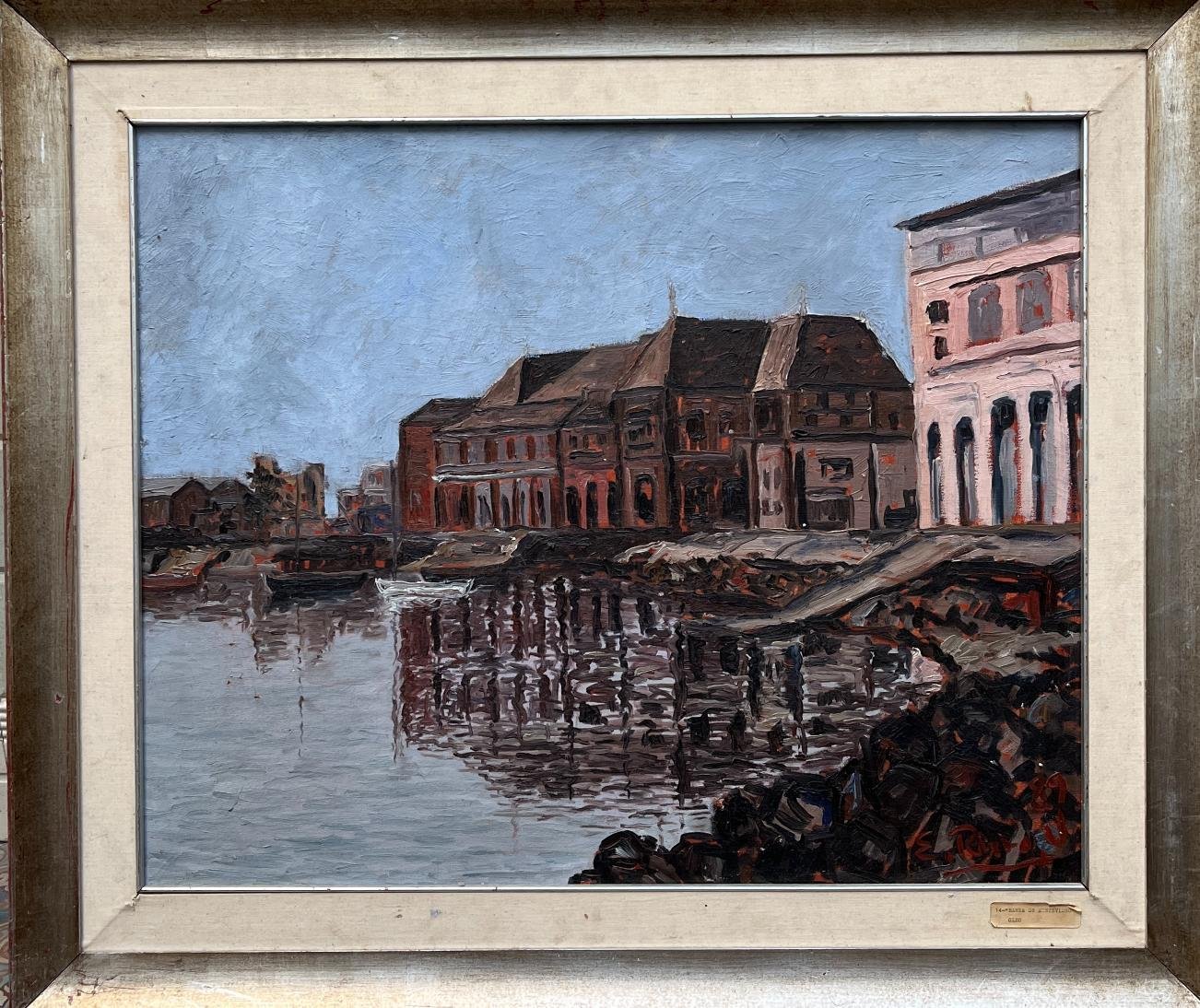 EDGARDO RIBEIRO (Escuela uruguaya, 1921-2006) Óleo sobre tela «Paisaje de Europa» Firmado abajo a la derecha 74 x 60 cm
