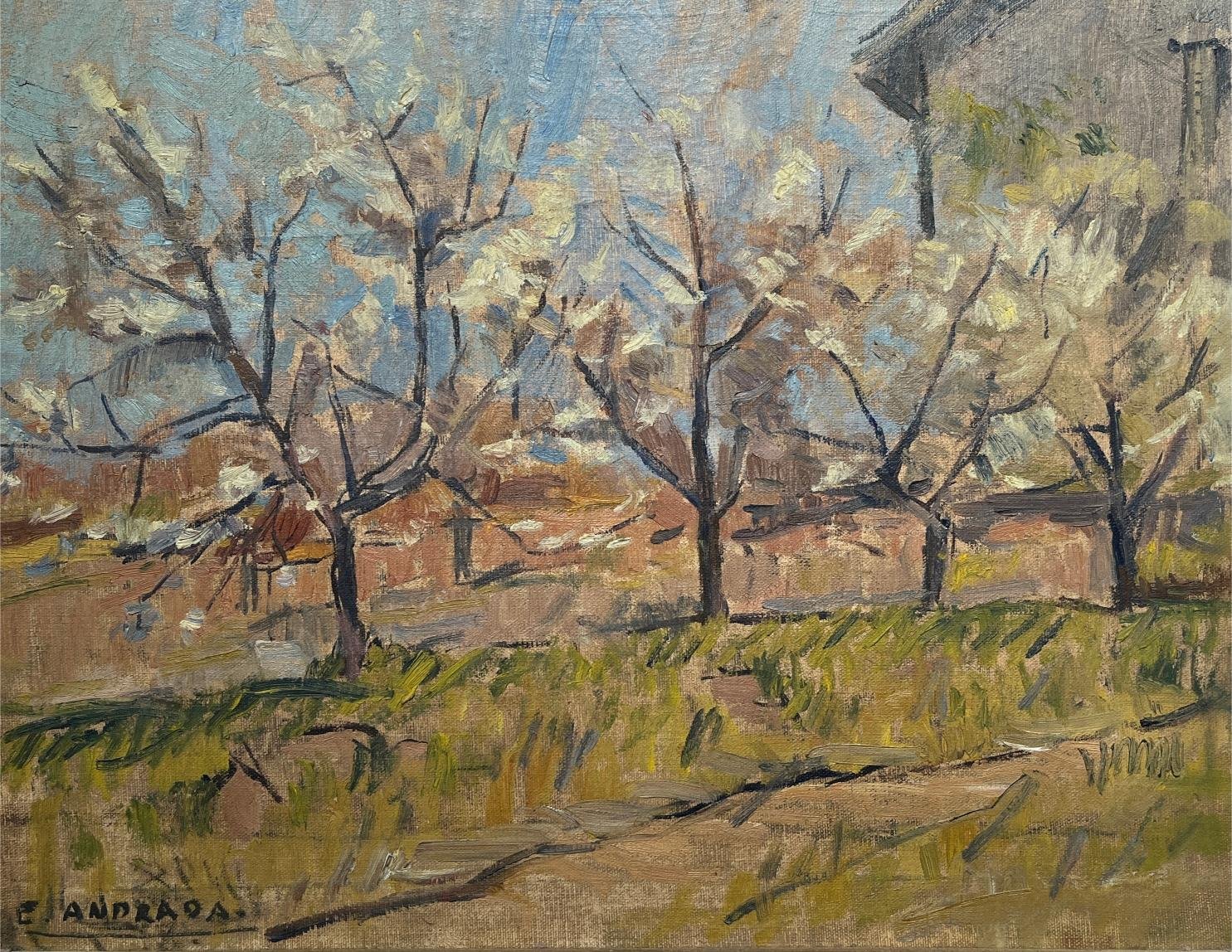 ELSA ANDRADA (Escuela uruguaya, 1920-2010) Óleo sobre tela «Árboles de la quinta Mendizábal» Firmado abajo a la izquierda 45 x 34 cm