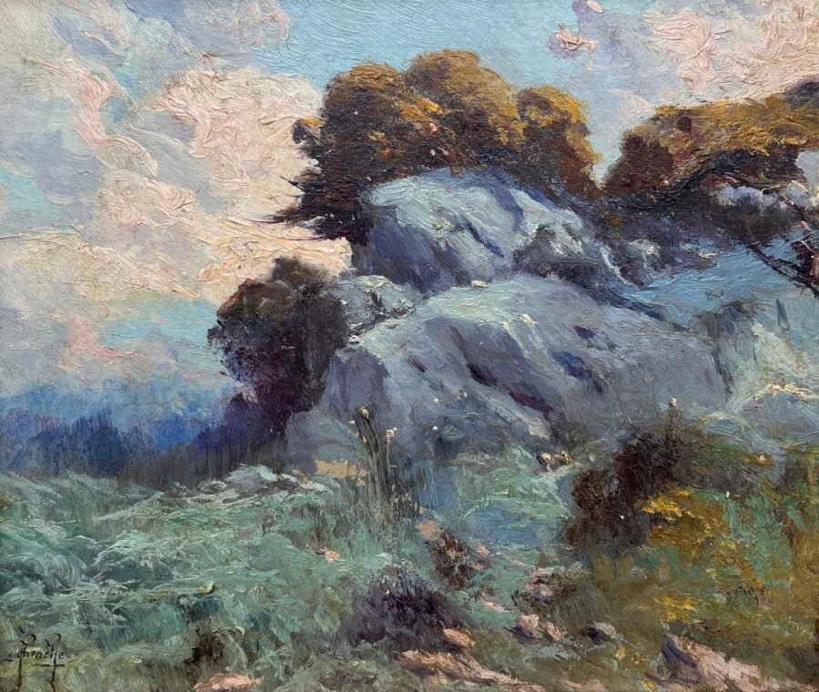 ERNESTO LAROCHE (Escuela uruguaya, 1879-1940) Óleo sobre tabla «Paisaje» Firmado abajo a la izquierda 16 x 19 cm