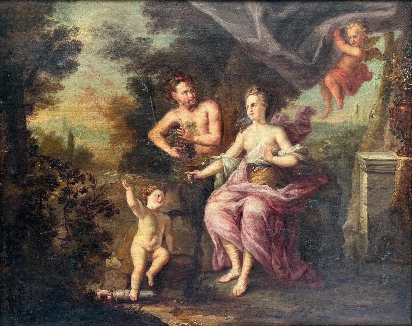 Escuela flamenca s. XVIII Óleo sobre tela “Baco y Ariadna” 45.5 x 57 cm