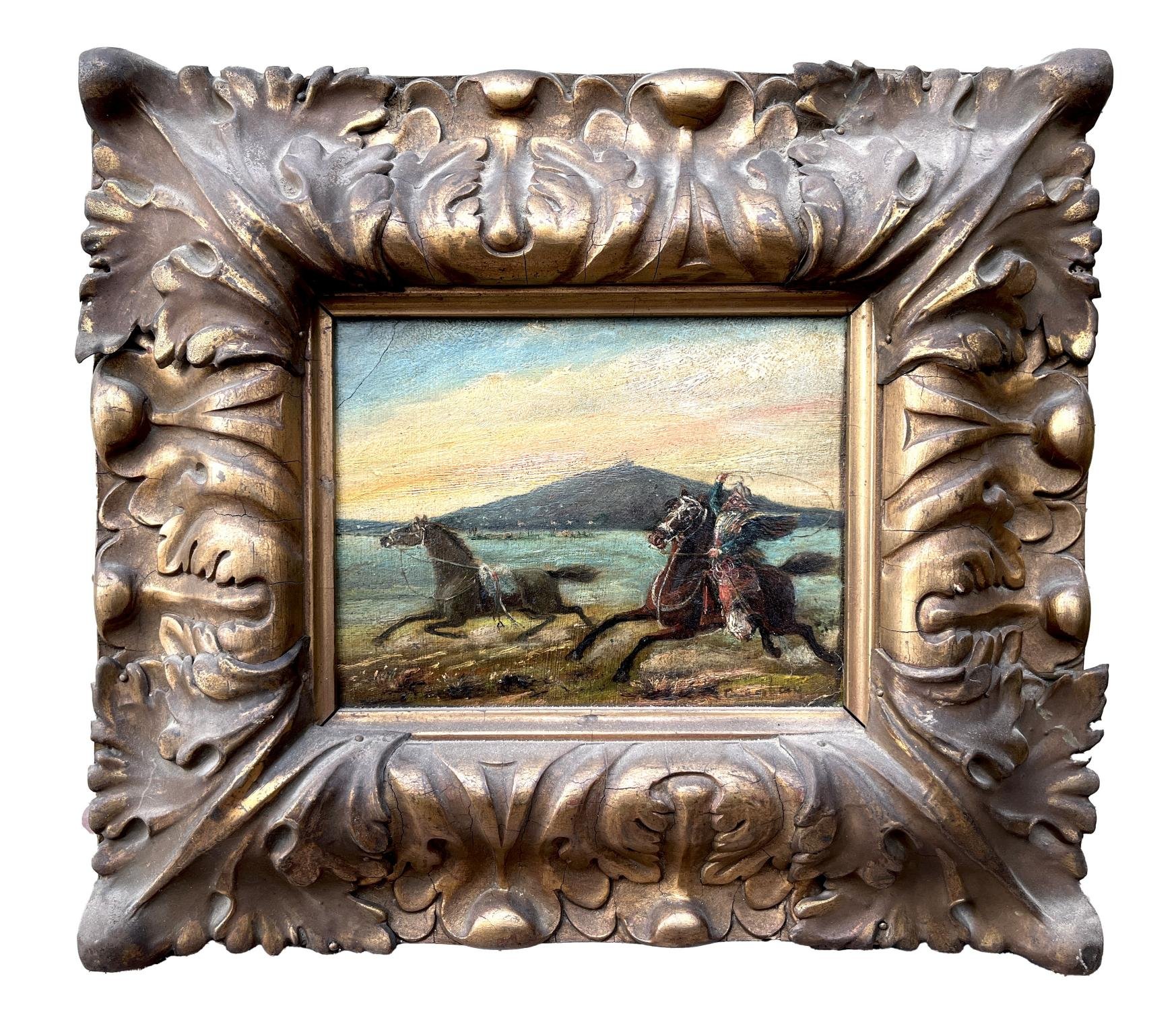 Escuela uruguaya s. XIX Óleo sobre tabla «Enlazando en la bahía de Montevideo» Firma ilegible abajo a la derecha 14 x 18 cm