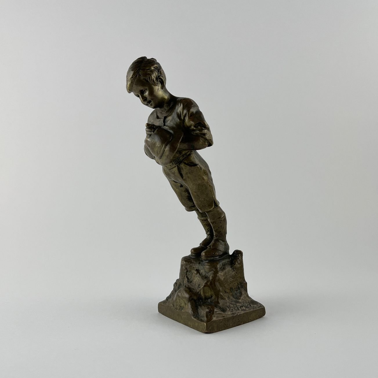 Escultura en bronce. «Niño.» Firmada «V. Held» en la base. Alto 16 cm.
