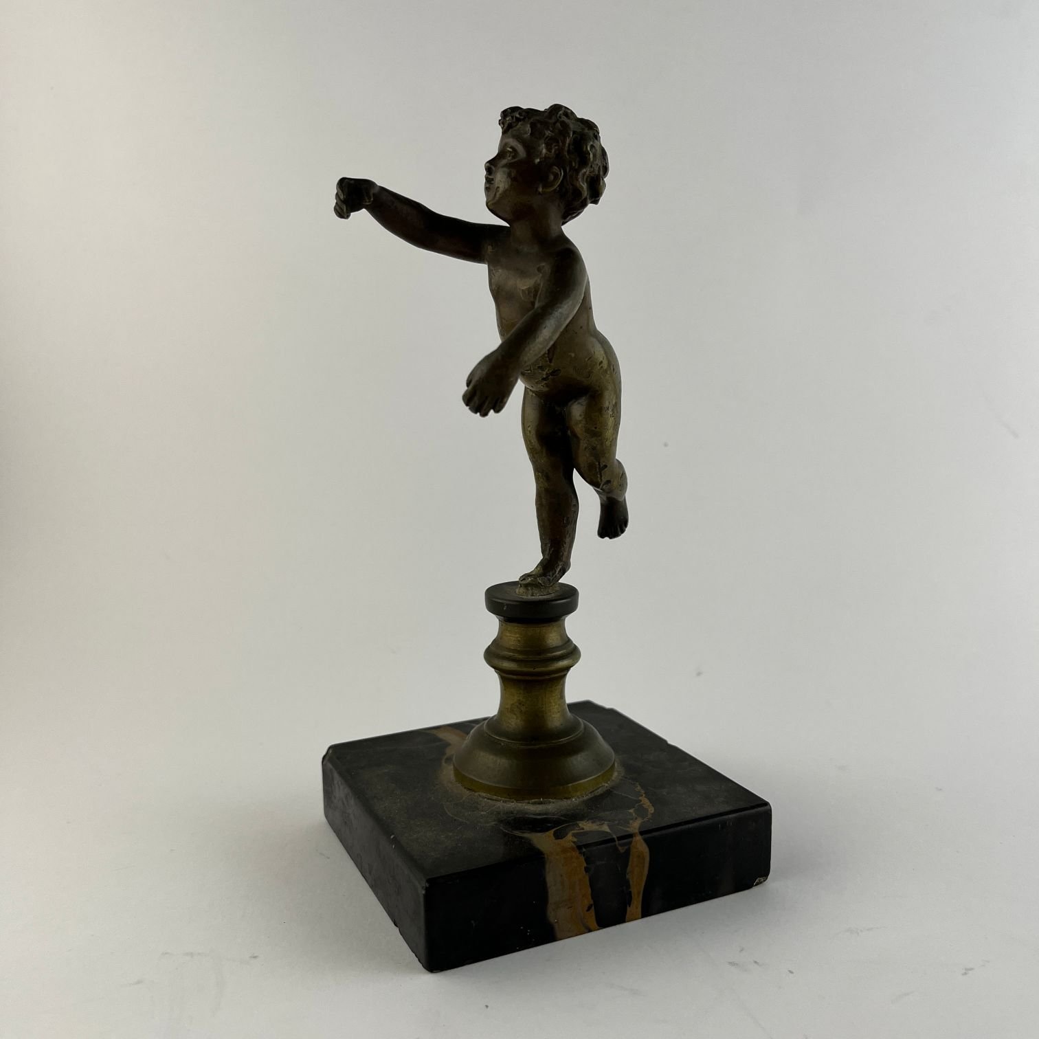 Escultura en bronce. «Niño.» Presentado sobre peana en mármol. Alto total 18 cm. Pequeña restauración.