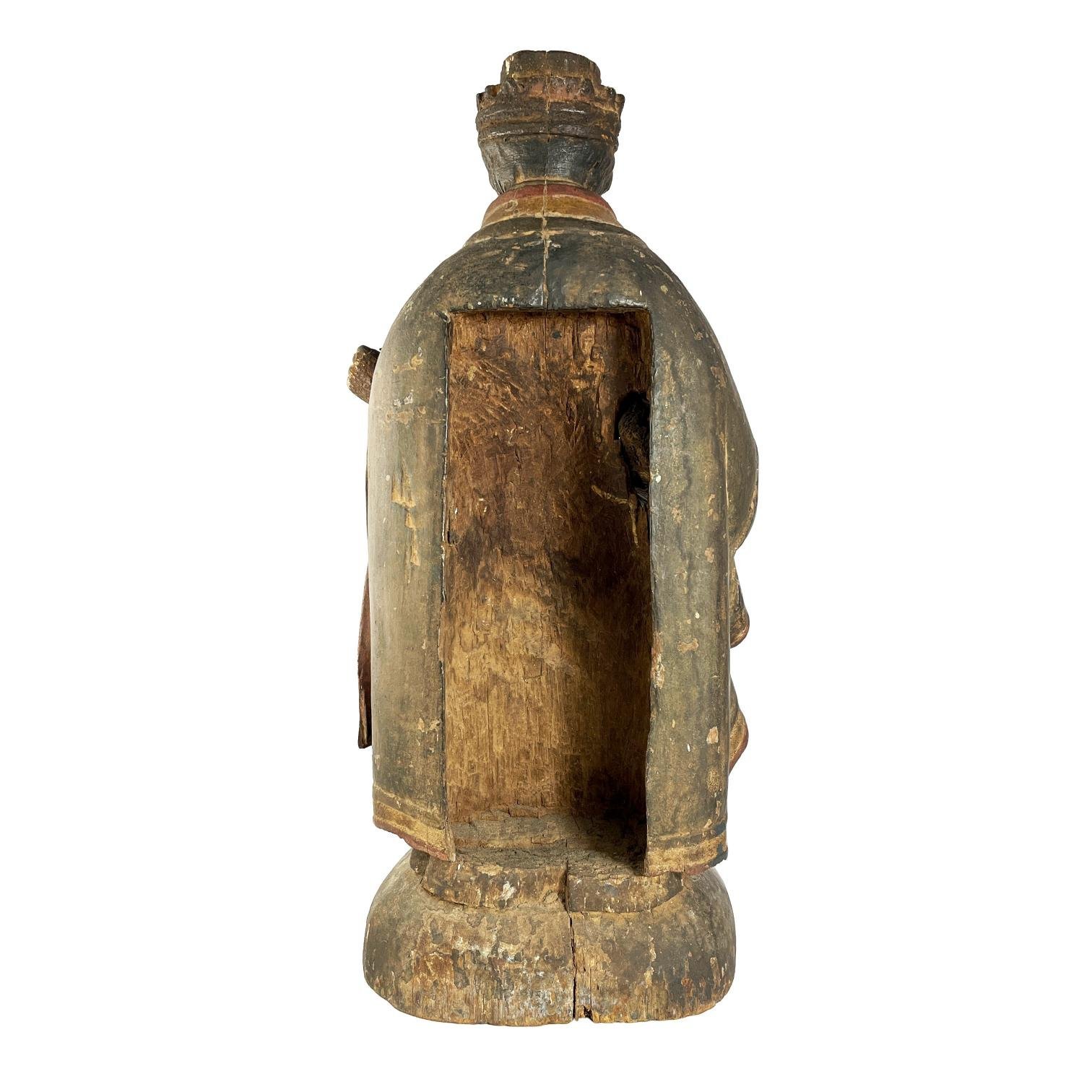 Escultura hispanoamericana s. XVIII en madera tallada y policromada. «San Clemente Papa.» 55 x 28 x 20 cm.