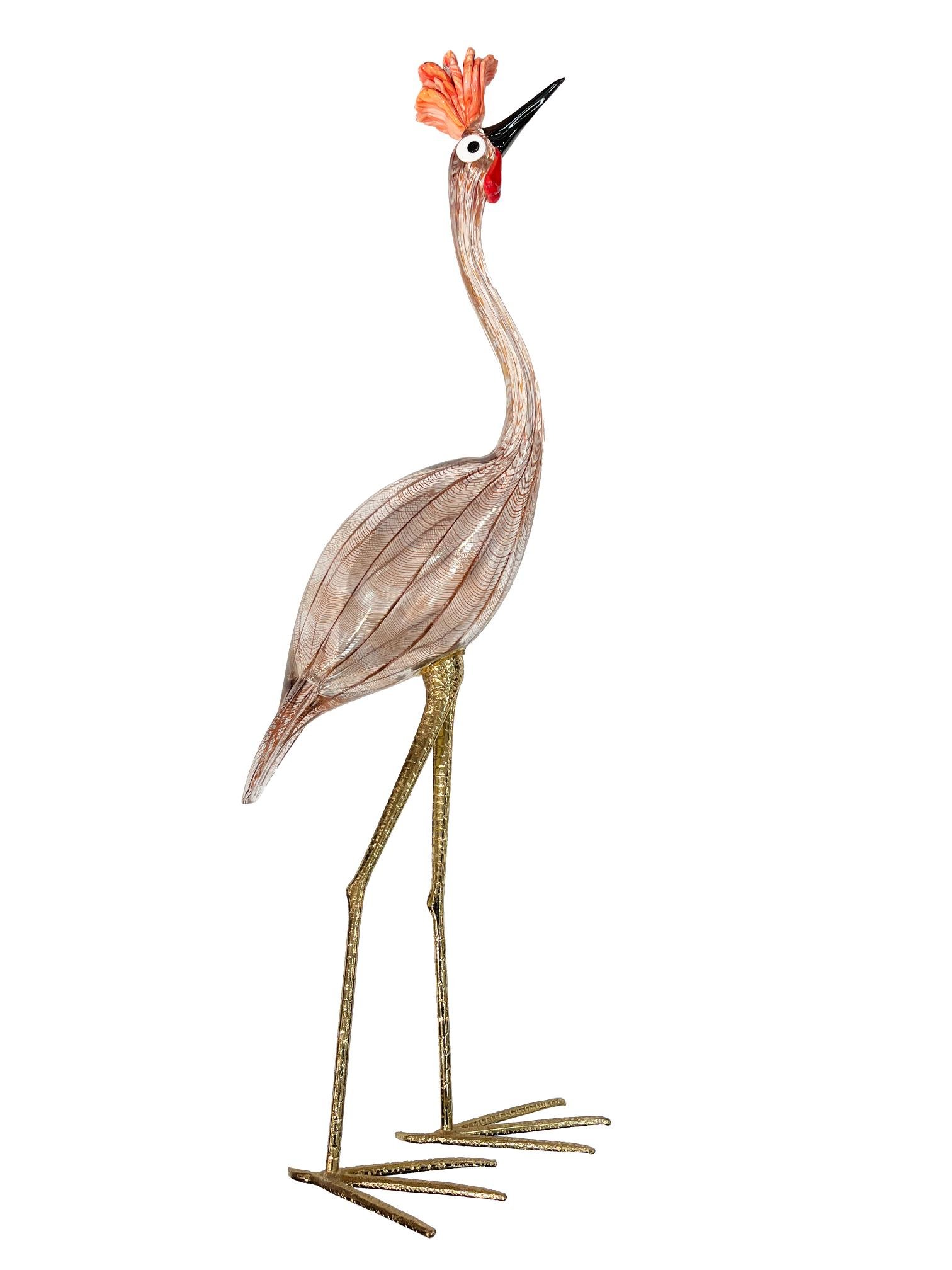 Escultura italiana en cristal de Murano y metal dorado. «Garza.» Alto 90 cm.