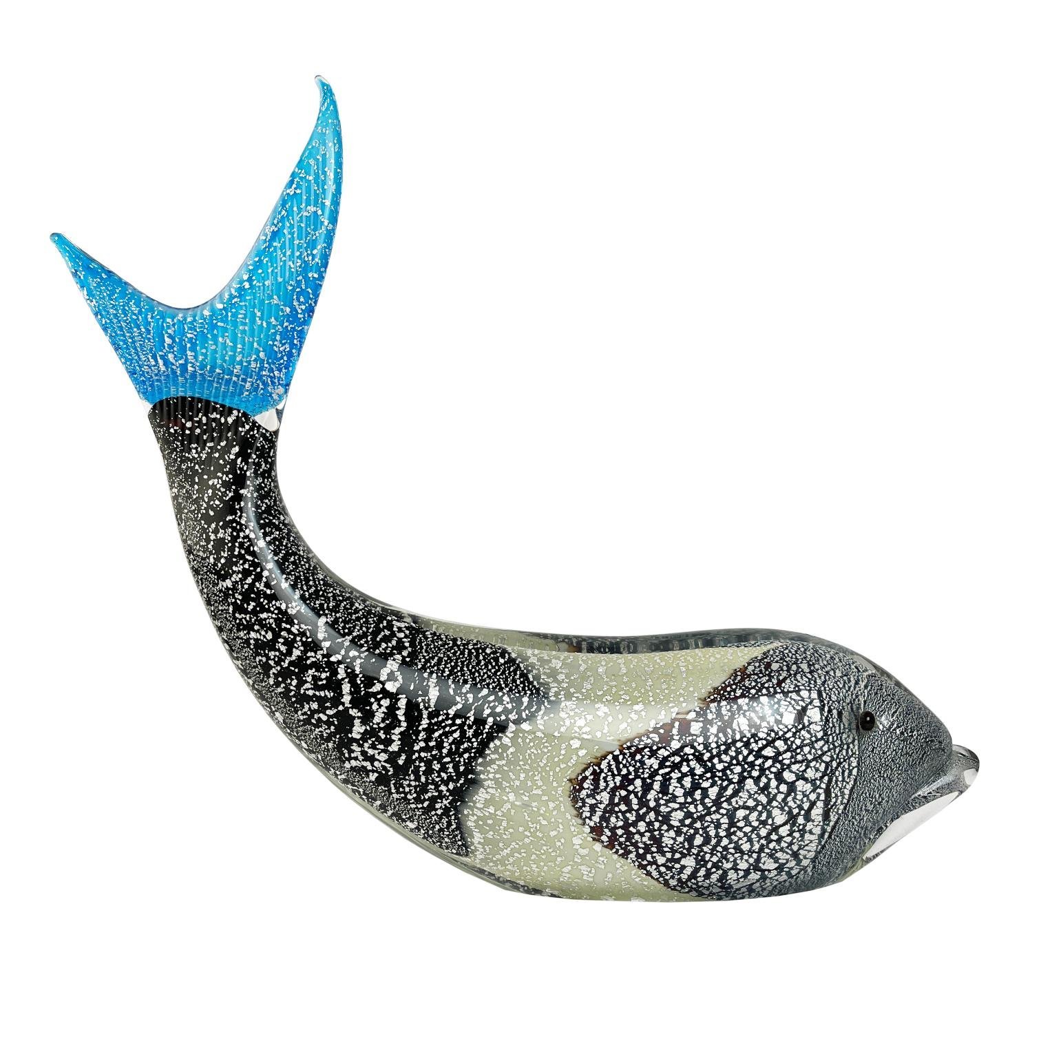 Escultura italiana en cristal de Murano en varios colores con lámina de plata. «Pez.» 38 x 43 x 8 cm.