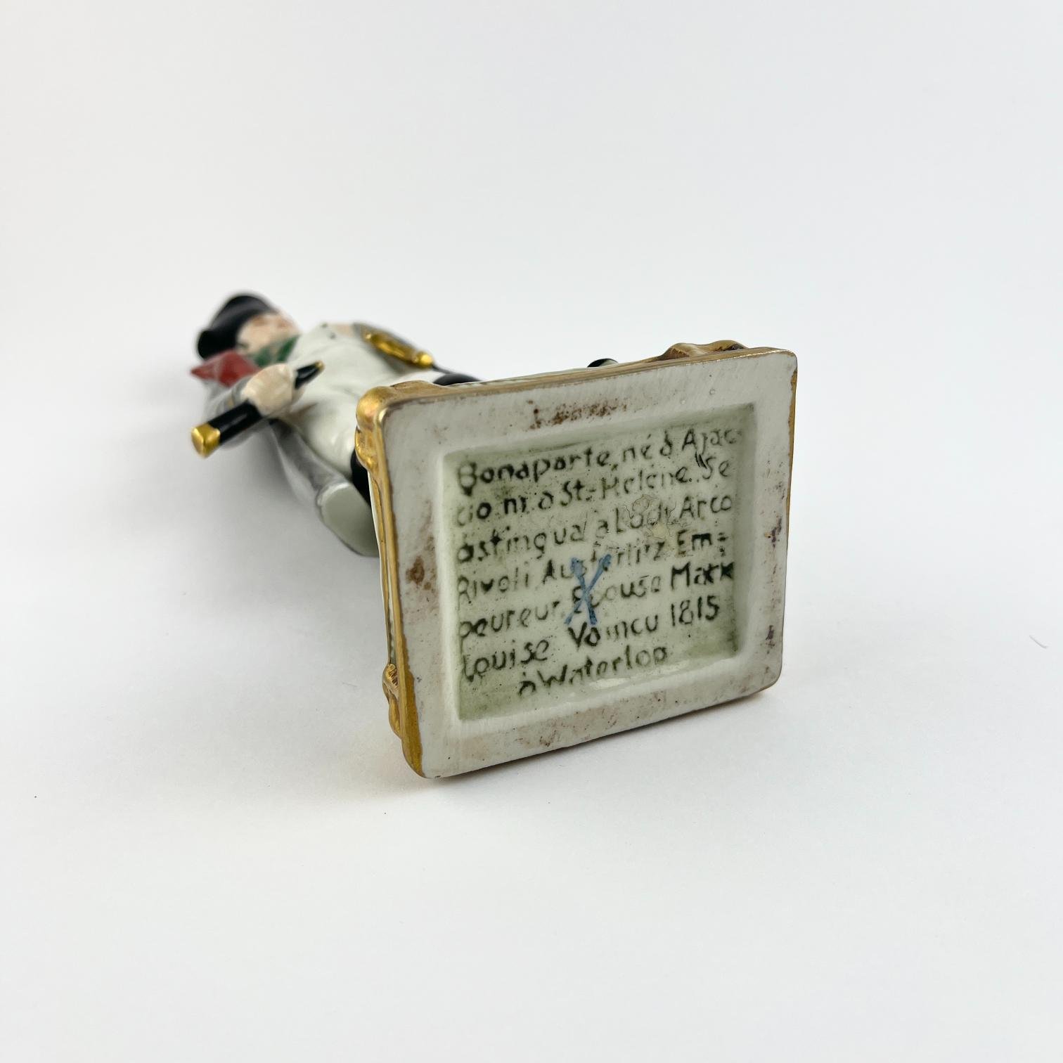 Escultura en porcelana policromada, con detalles en dorado. «Napoleón Bonaparte.» Alto 23 cm. Restaurada.