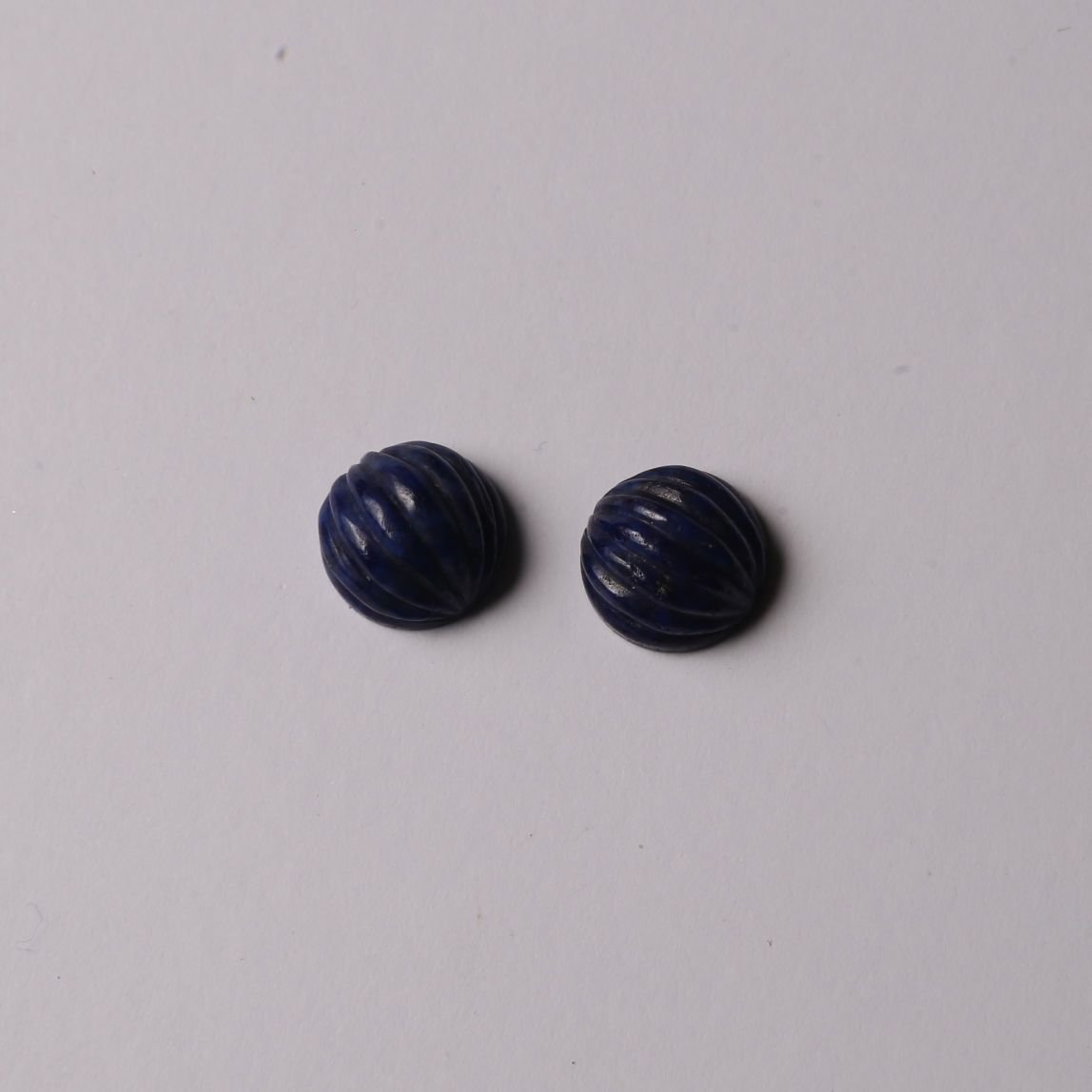 Par de medias esferas en lapislázuli, lobuladas, de un diámetro de 12 mm, y un alto de 6.5 mm.