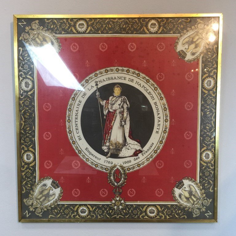 Estampado en seda. «Bi Centenaire de la Naissance de Napoleon Bonaparte. Empereur des Francais. 1769-1969.» 78 x 78 cm.