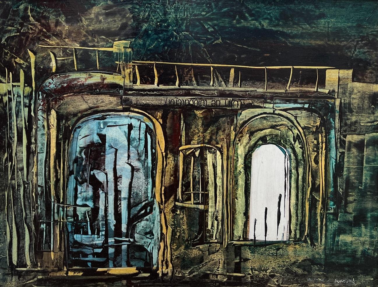ESTHER SCHUSTER (Escuela argentina, 1915-2001) Técnica mixta sobre fibra «Casa» Firmado abajo a la derecha 34 x 43 cm