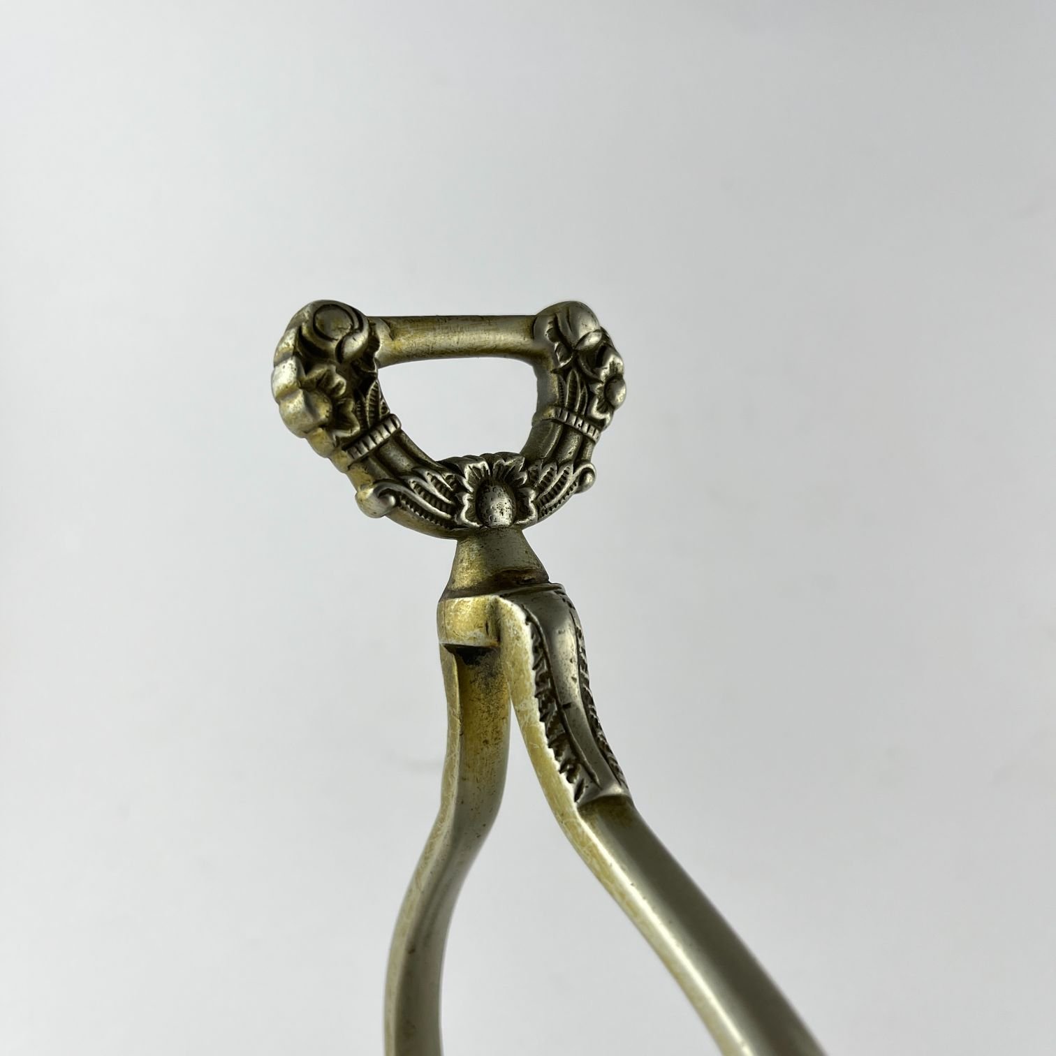 Par de estribos tipo campana en metal blanco decorados «cabeza de caballo».