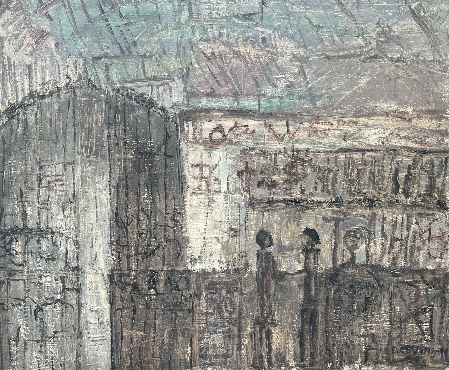 EVA OLIVETTI (1924-2013) «Paisaje de ciudad» Óleo sobre cartón Firmado y fechado “70” abajo a la derecha 50 x 60 cm