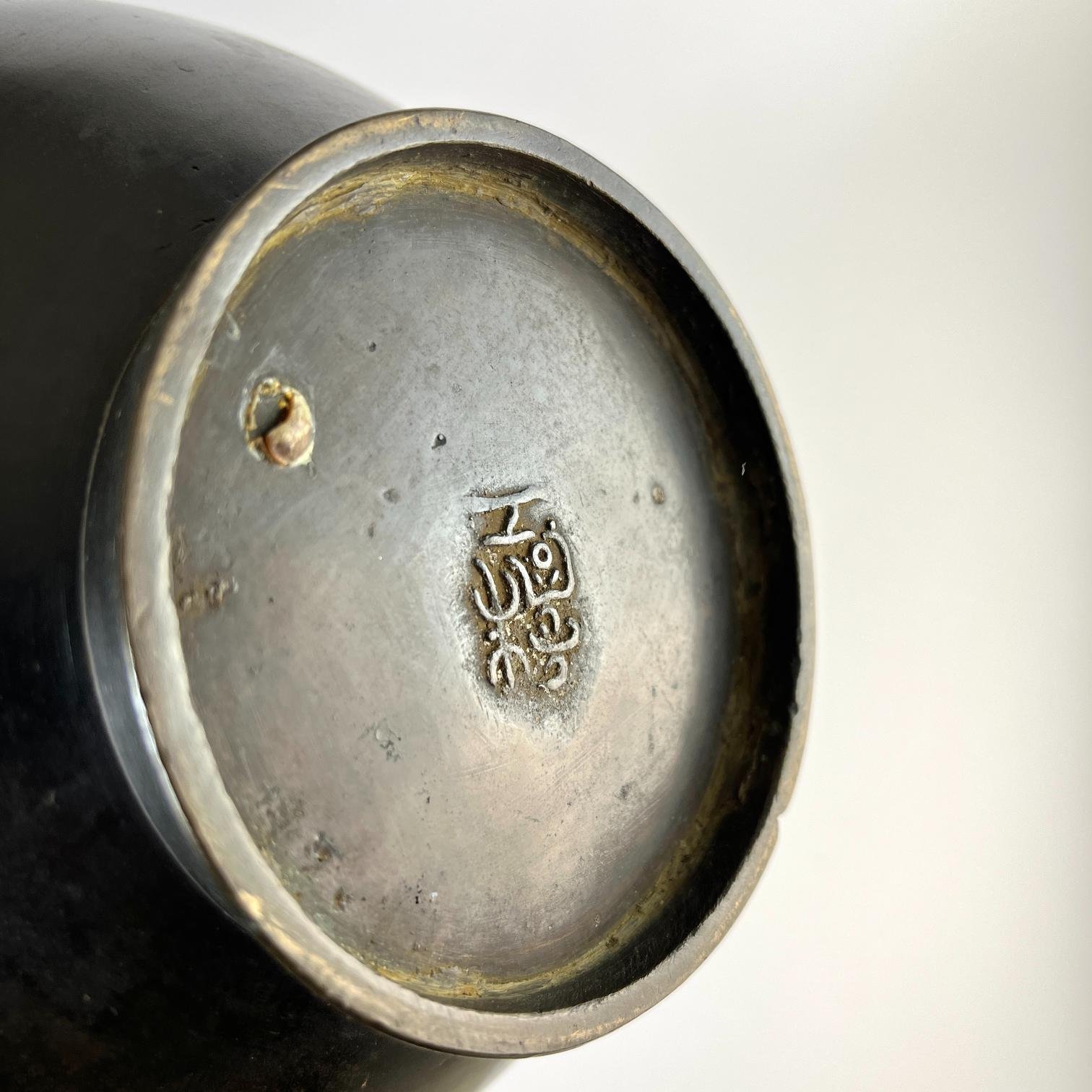 Florero japonés en bronce decorado «qilin». Marcado en la base. 34 x 17 cm.