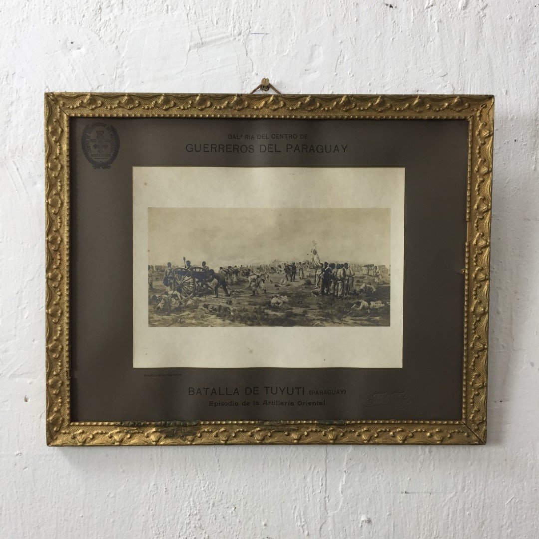 Fotografía. «Galería del centro de guerreros del Paraguay. Batalla de Tuyutí. Episodio de la artillería oriental.» 29 x 37 cm.