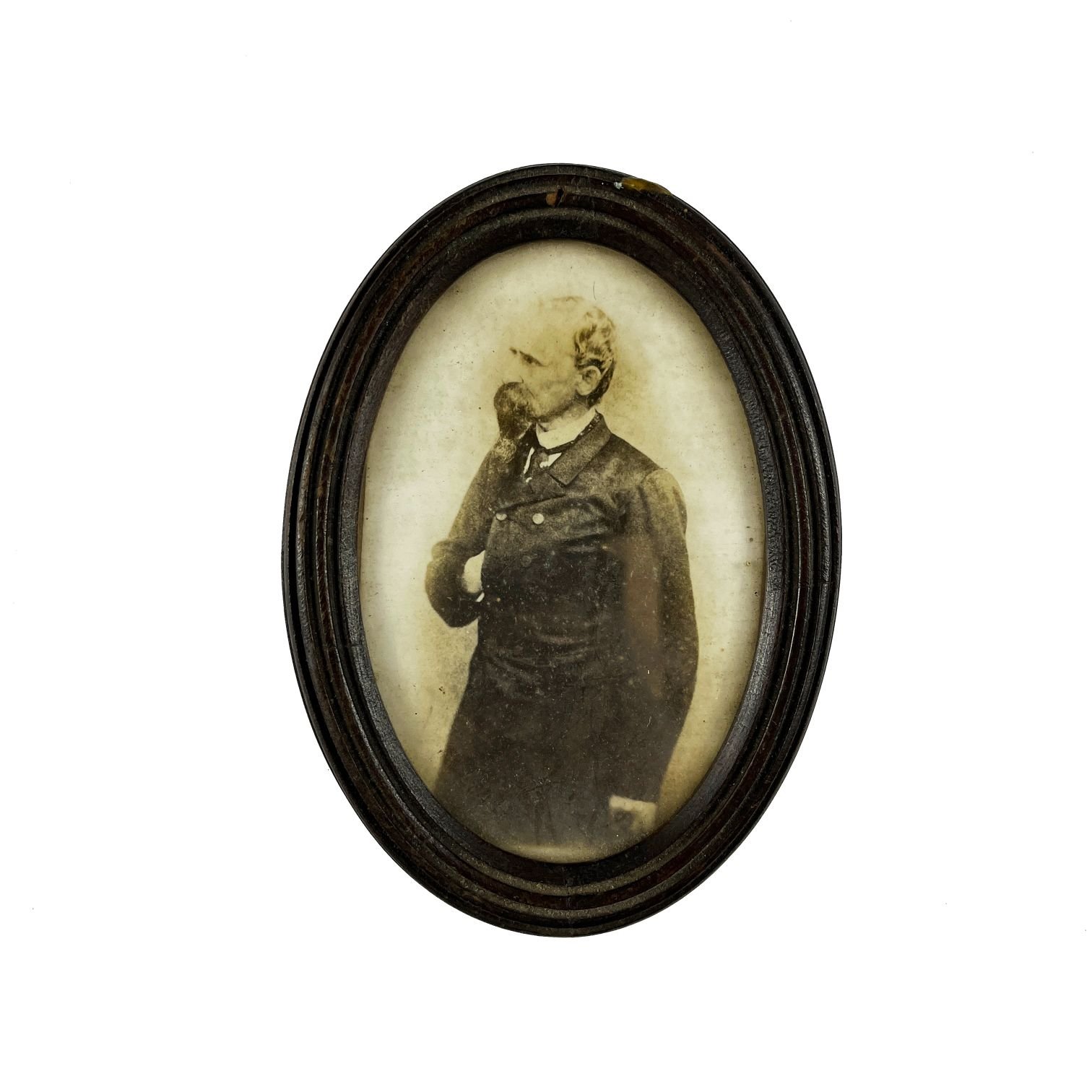 Fotografía oval. Albúmina sobre papel. «Leandro Gómez.» 13 x 8.5 cm.