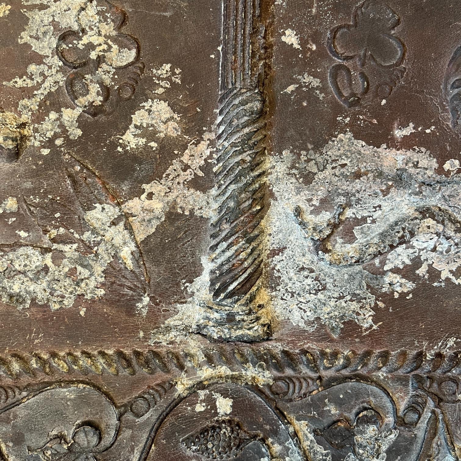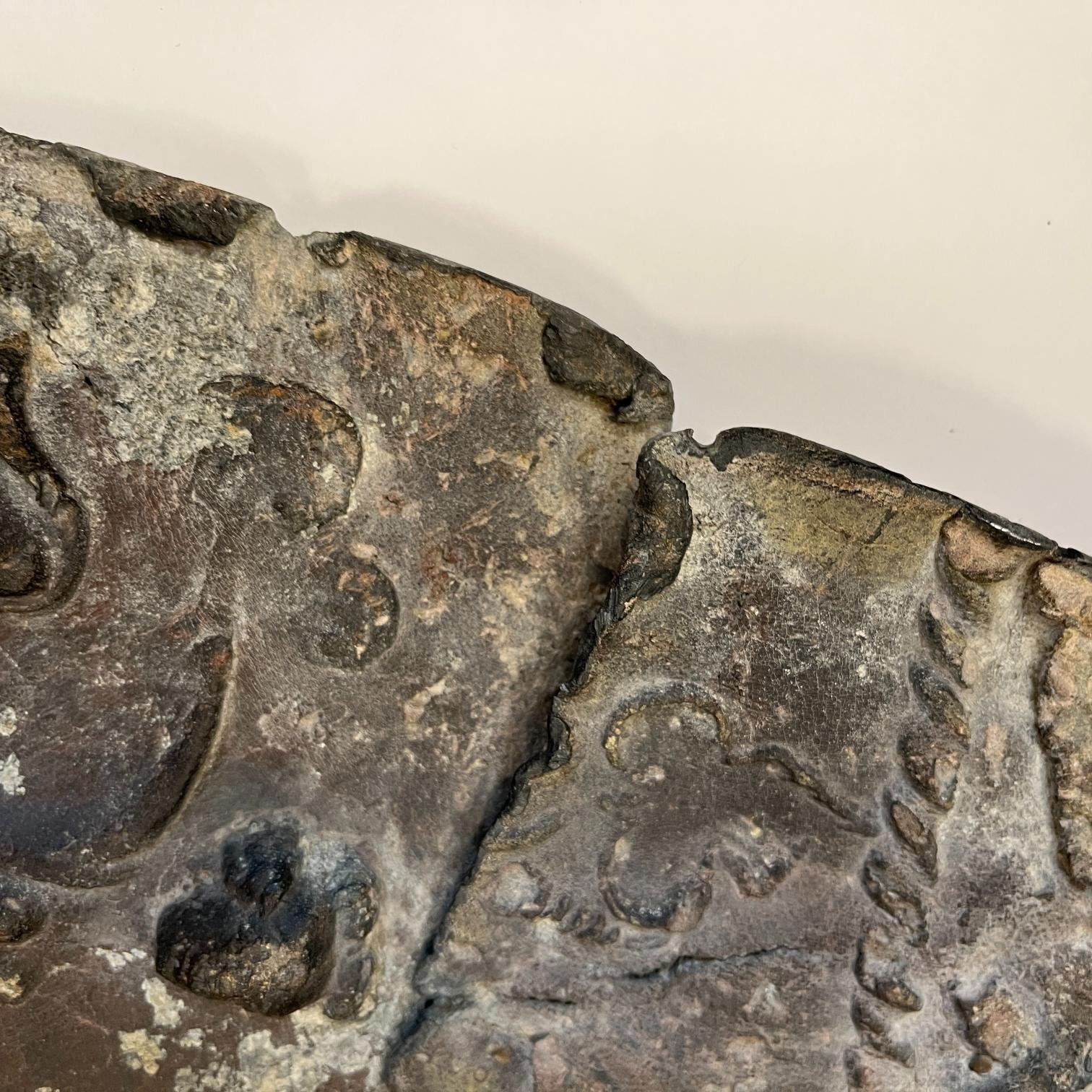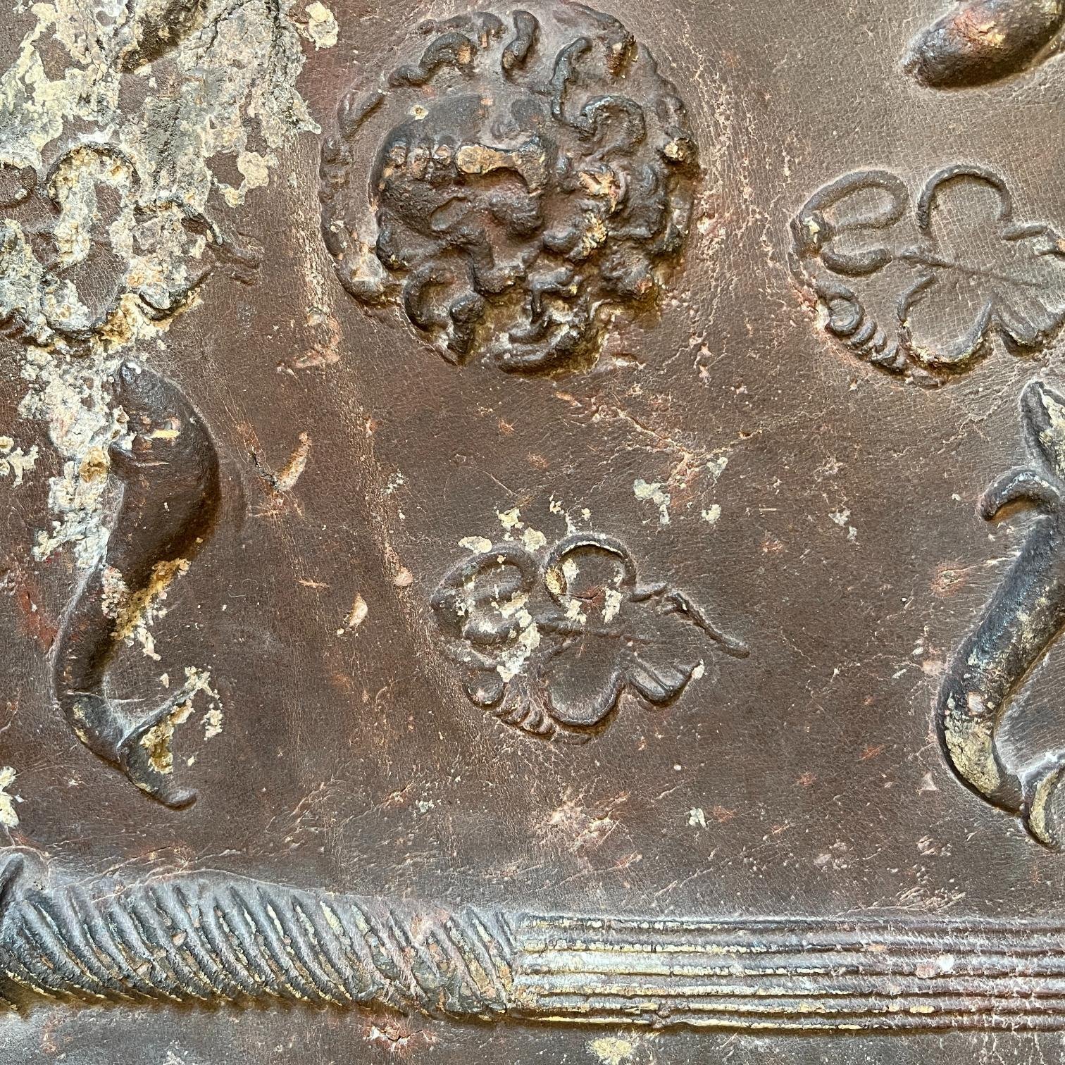 Fragmento de sarcófago romano en plomo tallado “columnas, esfinges y cabeza de Medusa”. Región de Siria o Palestina. 35 x 61 cm. Se adjunta certificado de exportación de bienes culturales expedido por el ministerio de Cultura de Francia.