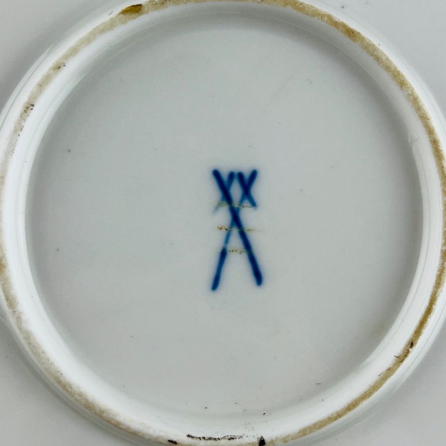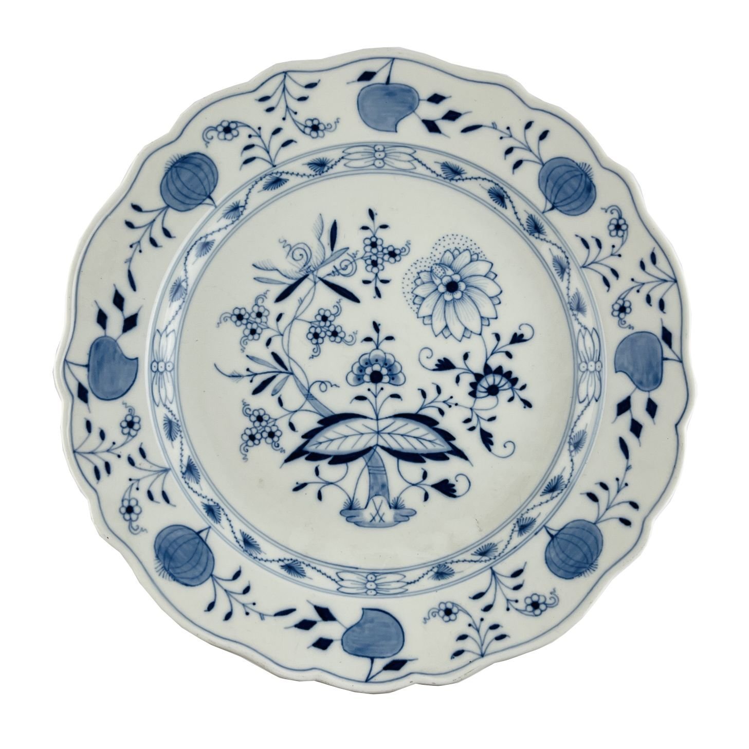 Fuente alemana redonda porcelana Meissen modelo Onion. Diámetro 36 cm
