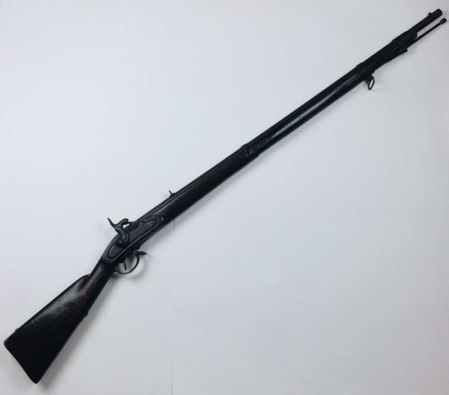 Fusil francés Minié de avancarga sistema de percusión. Culata ergonómica. Portabaqueta restaurada. Largo total 133 cm.