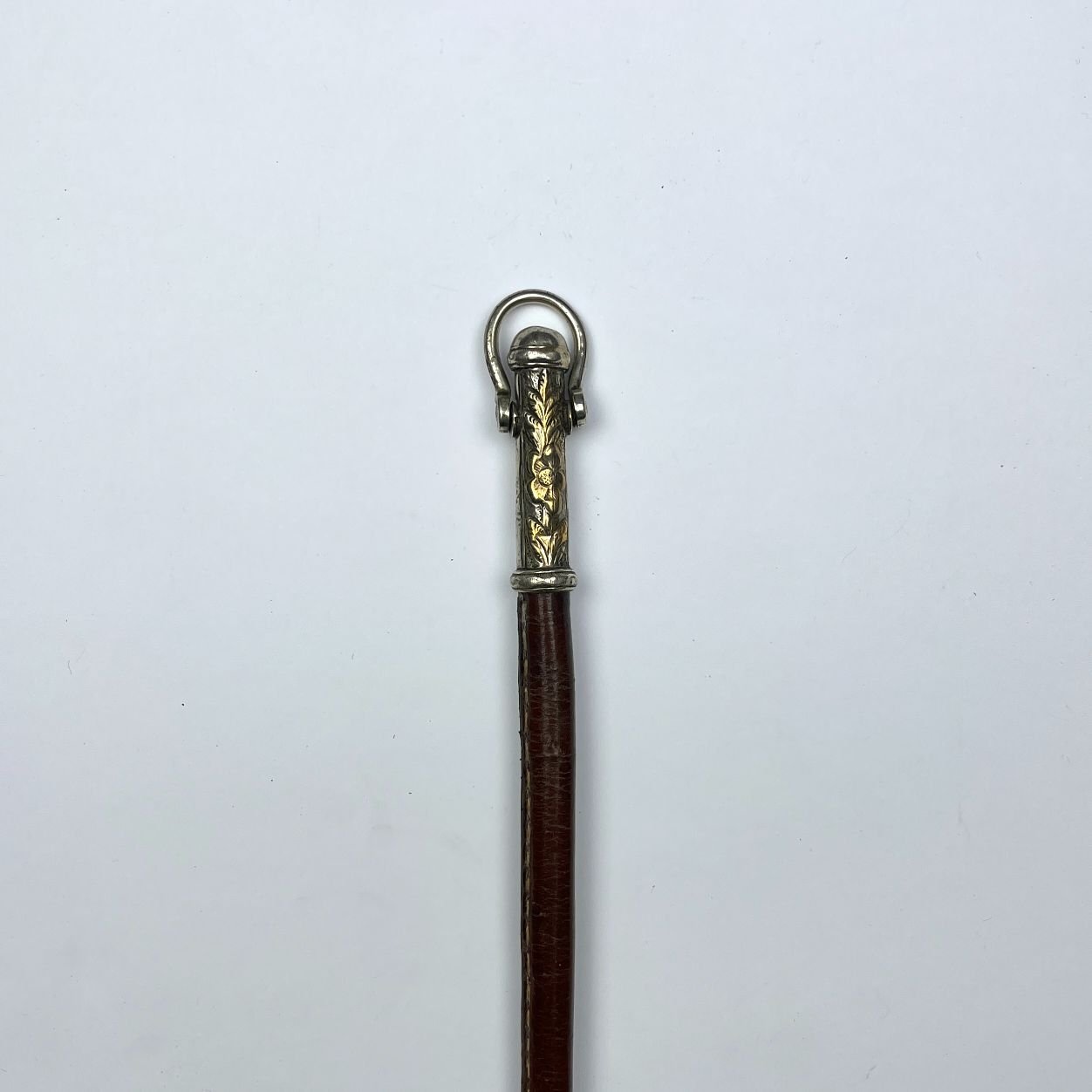 Fusta forrada en cuero con cabo en plata y oro cincelada «hojas y flores».