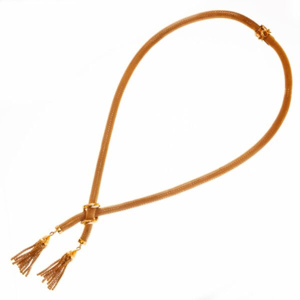 Gargantilla tipo moño en malla de hilos de oro 18 K amarillo. Diámetro 5 mm. Peso 41 gr.