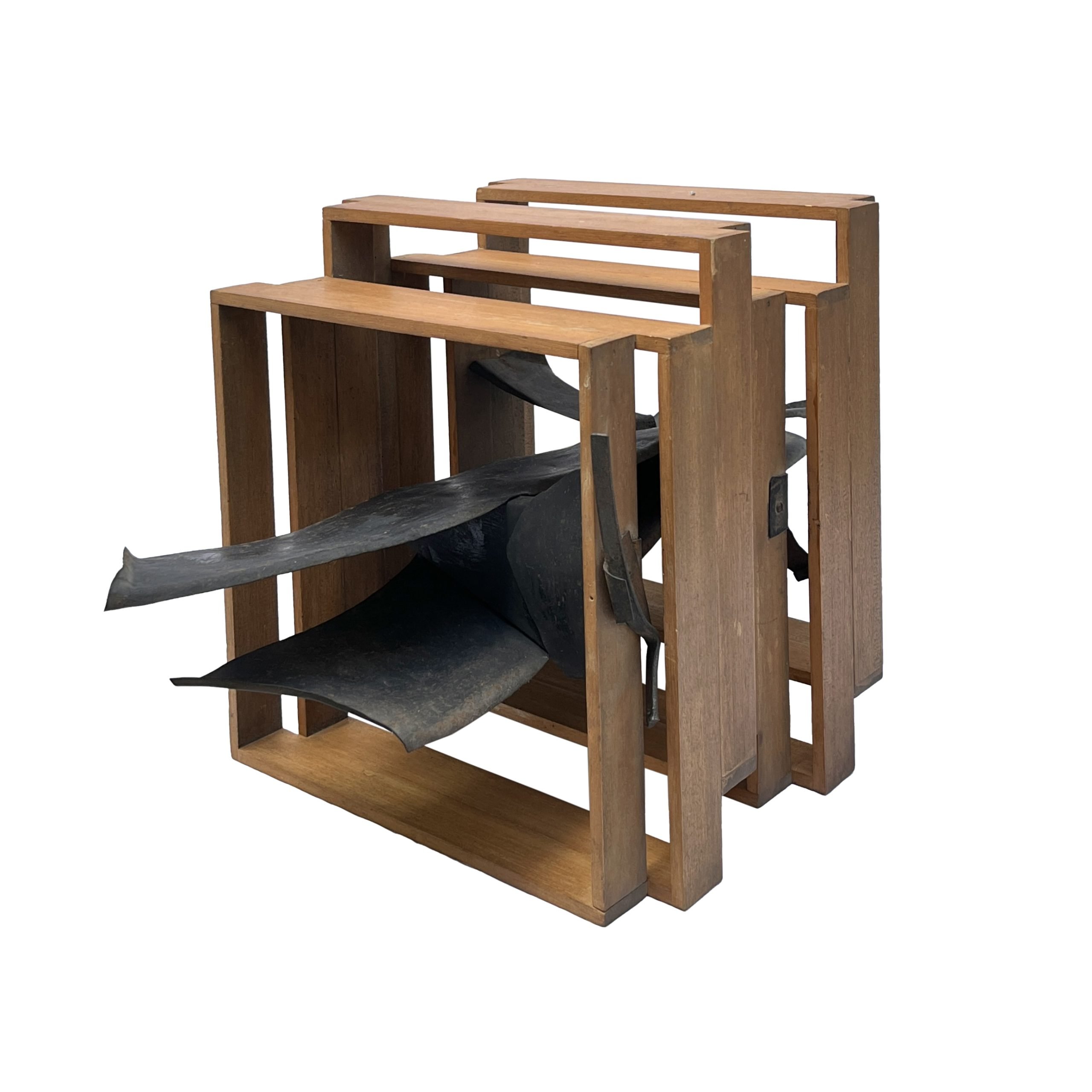 GERMÁN CABRERA (Escuela uruguaya, 1903-1990) Escultura en madera y chapa «Planos» 40 x 64 x 35 cm